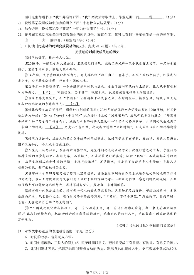 【试卷】广东广州市增城区2025-2026学年七年级上学期期末考试语文
