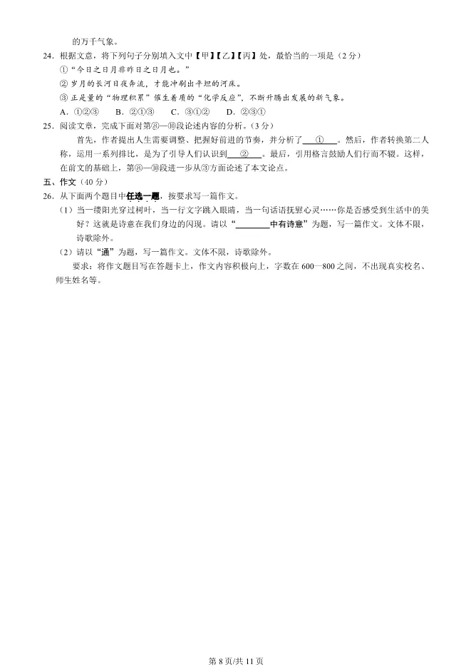 26春人教语文拔尖大试卷123456下