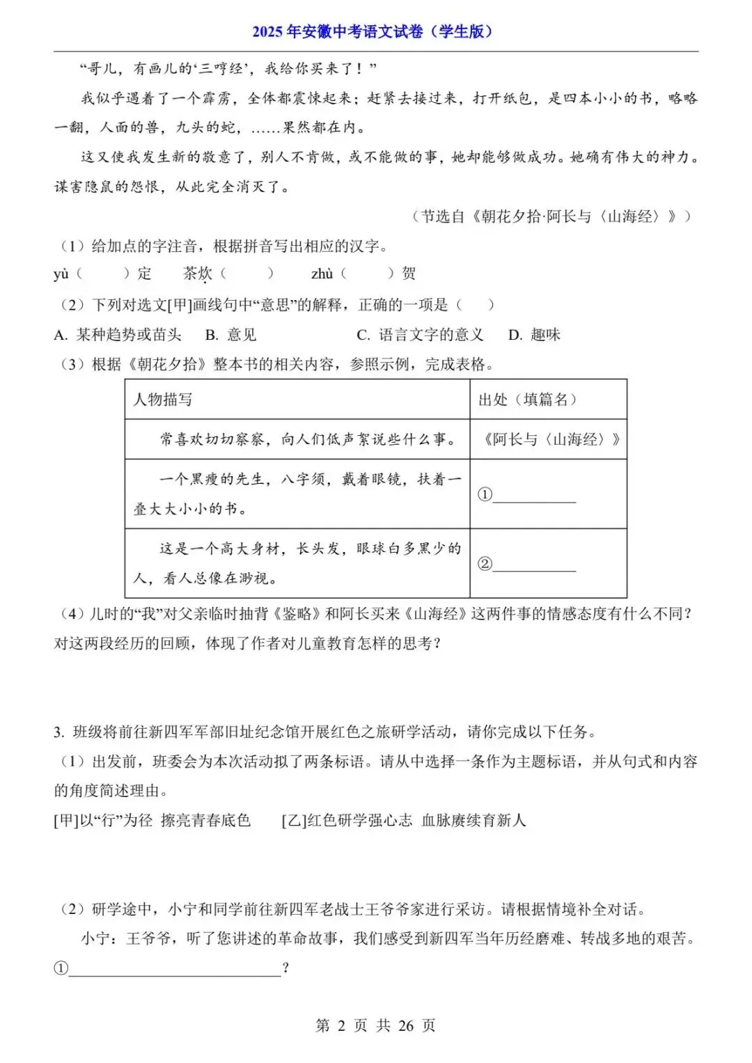 2025年上海中考语文试卷