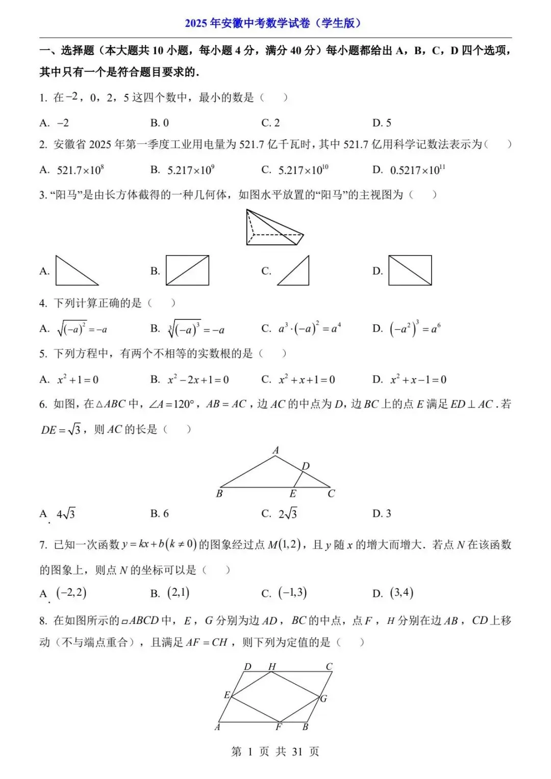 【全国地区】2025年中考数学考试真题(中考真题共计51份)- 电子版可打印~