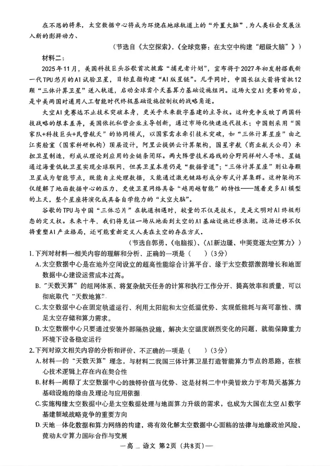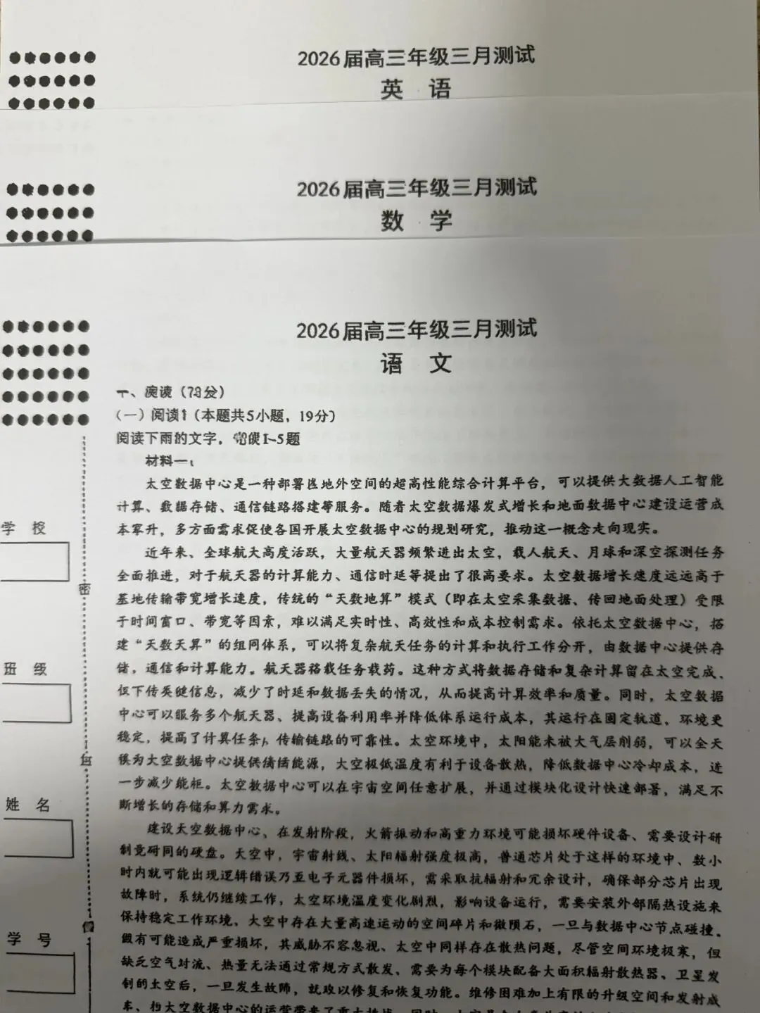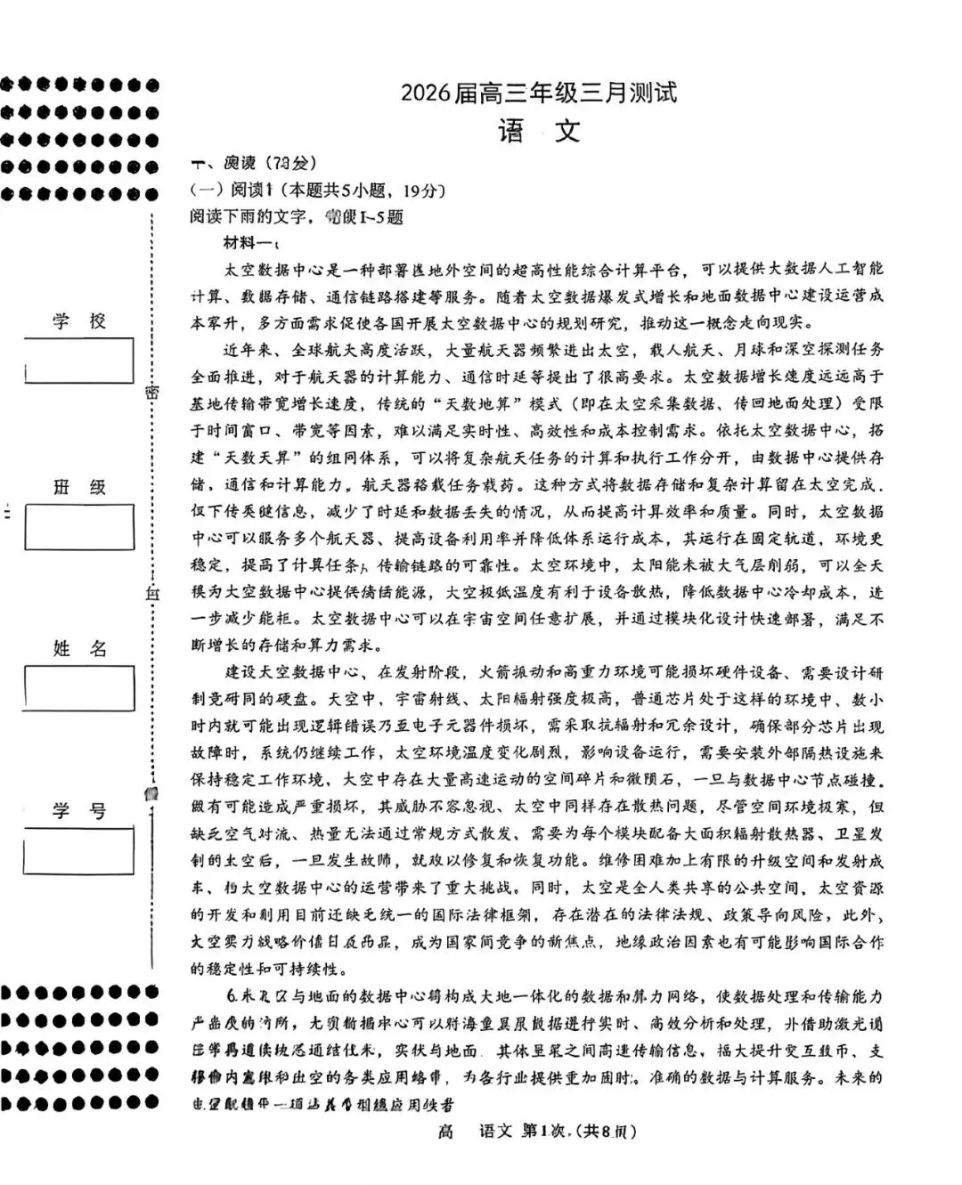 考试名称:南昌一模2026届南昌市高三年级三月测试