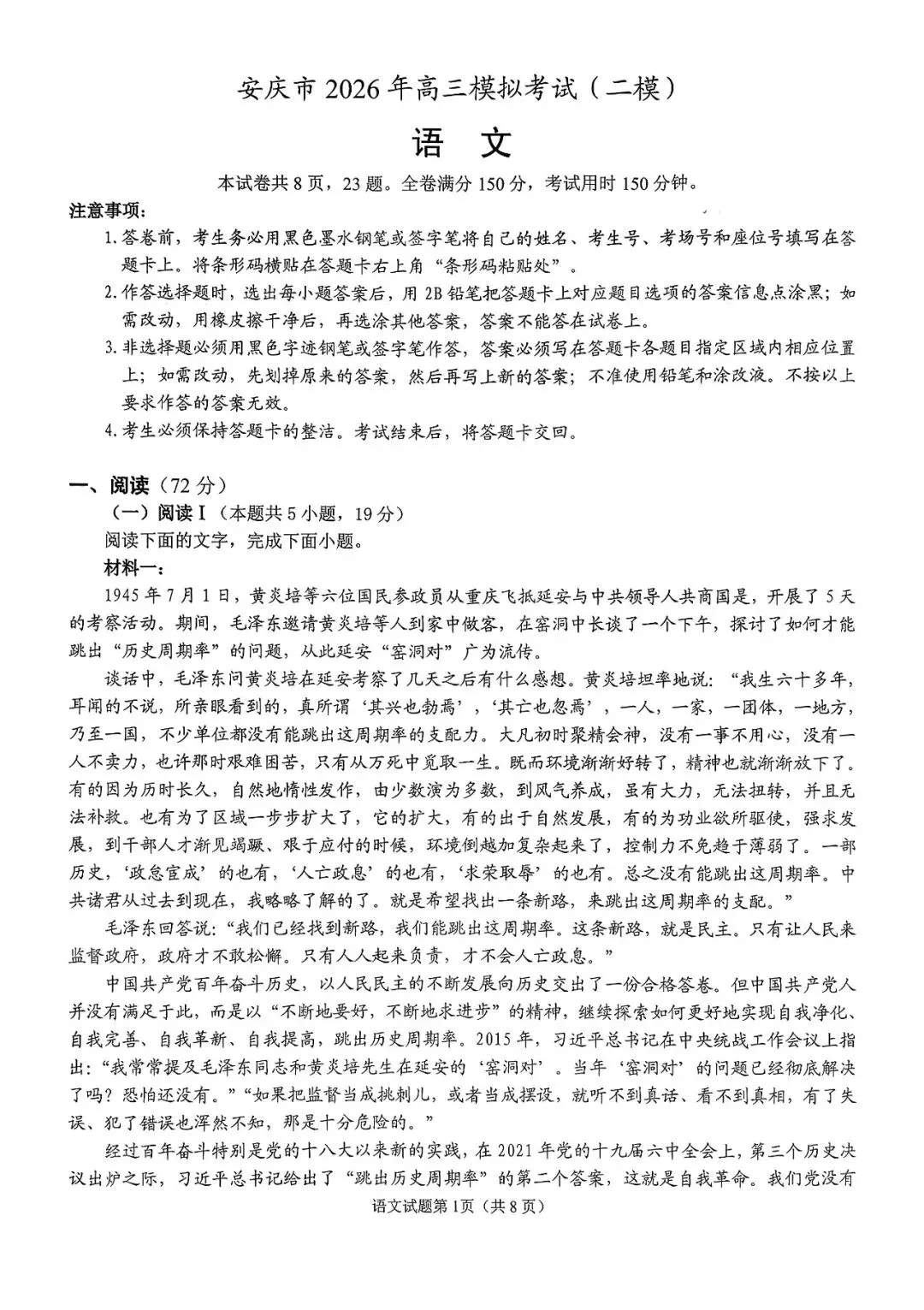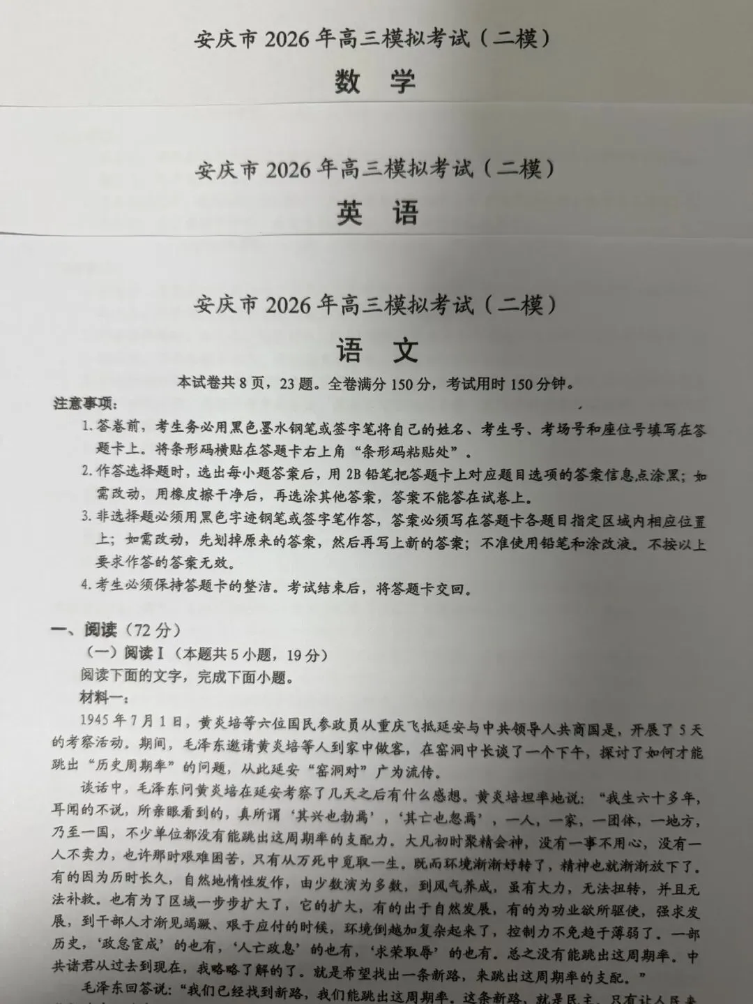 考试名称:安庆二模2026年安庆市高三模拟考试(二模)