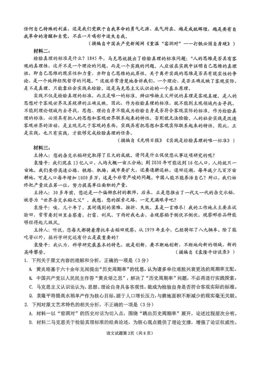 谏言:山重水复疑无路,柳暗花明又一村,语文、数学、英语、物理、历史、化学、生物、地理、政治各科试题完整版汇总!