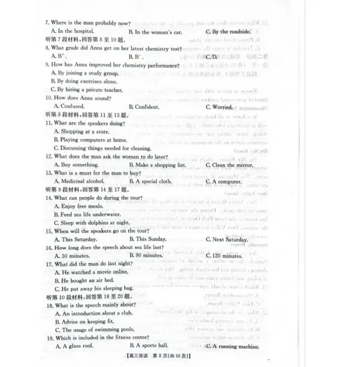 金太阳2026届高三3月大联考试卷及答案(26-287C)全科下载