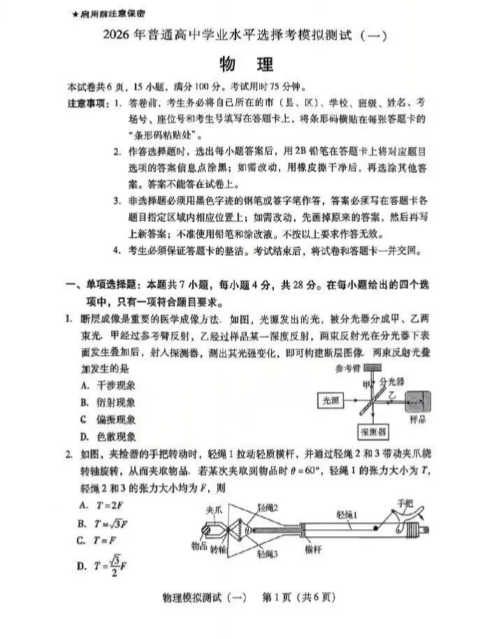 >有点难?2026广东一模物理历史试卷、答案曝光!