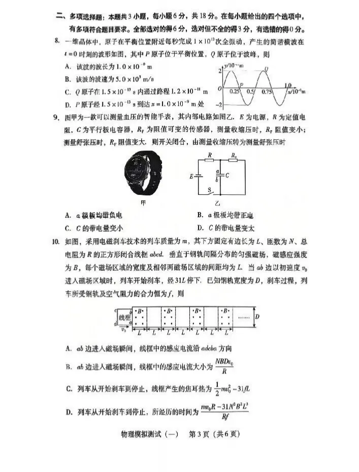【高三试卷】2026年广东一模——物理试卷与答案