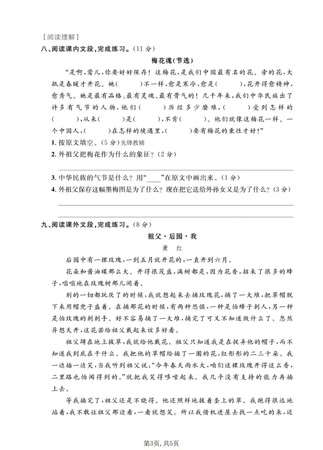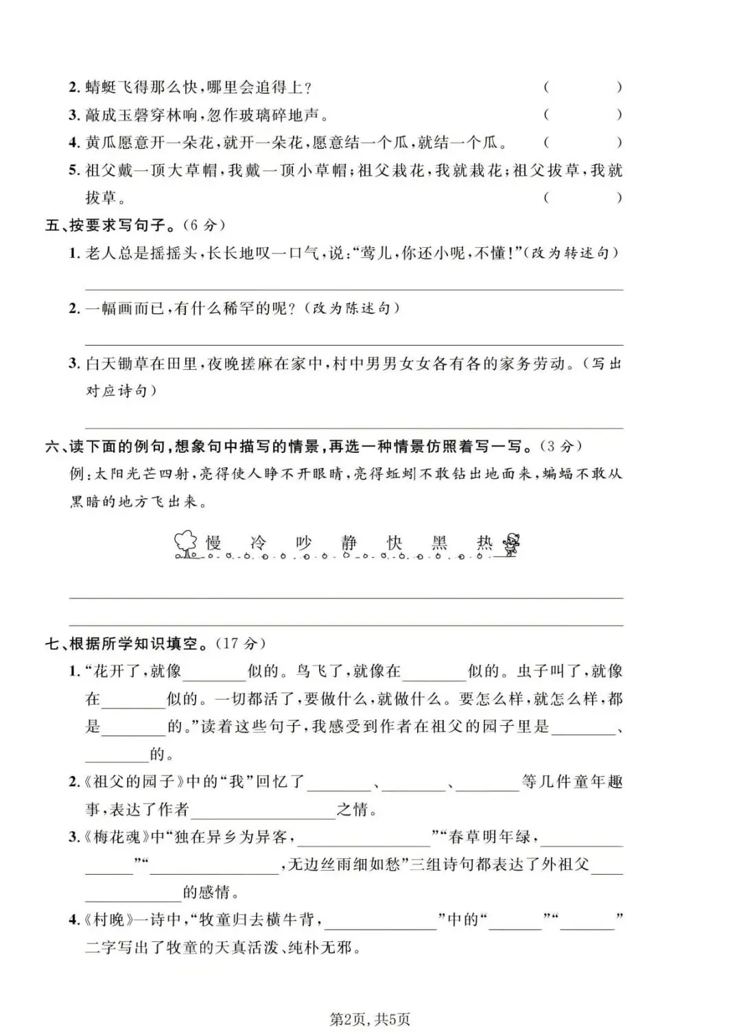 实验班提优大试卷五下人教版(关注免费分享电子版)