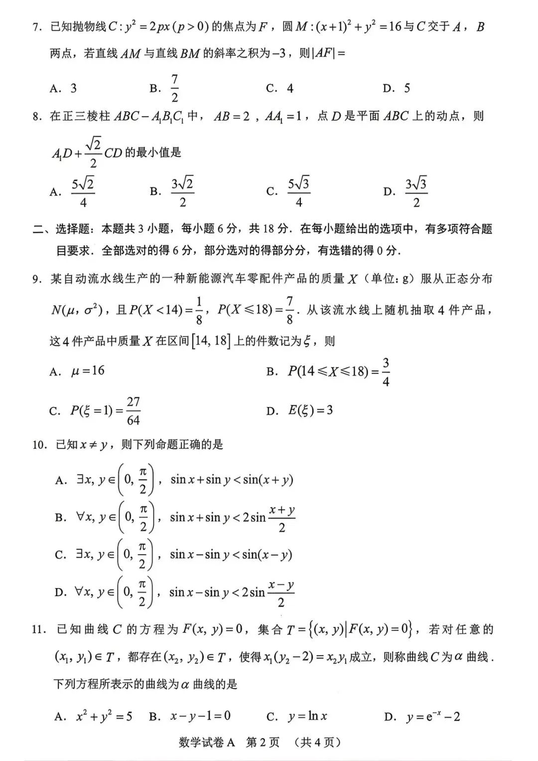 金太阳2026届高三3月大联考试卷及答案(26-287C)全科下载
