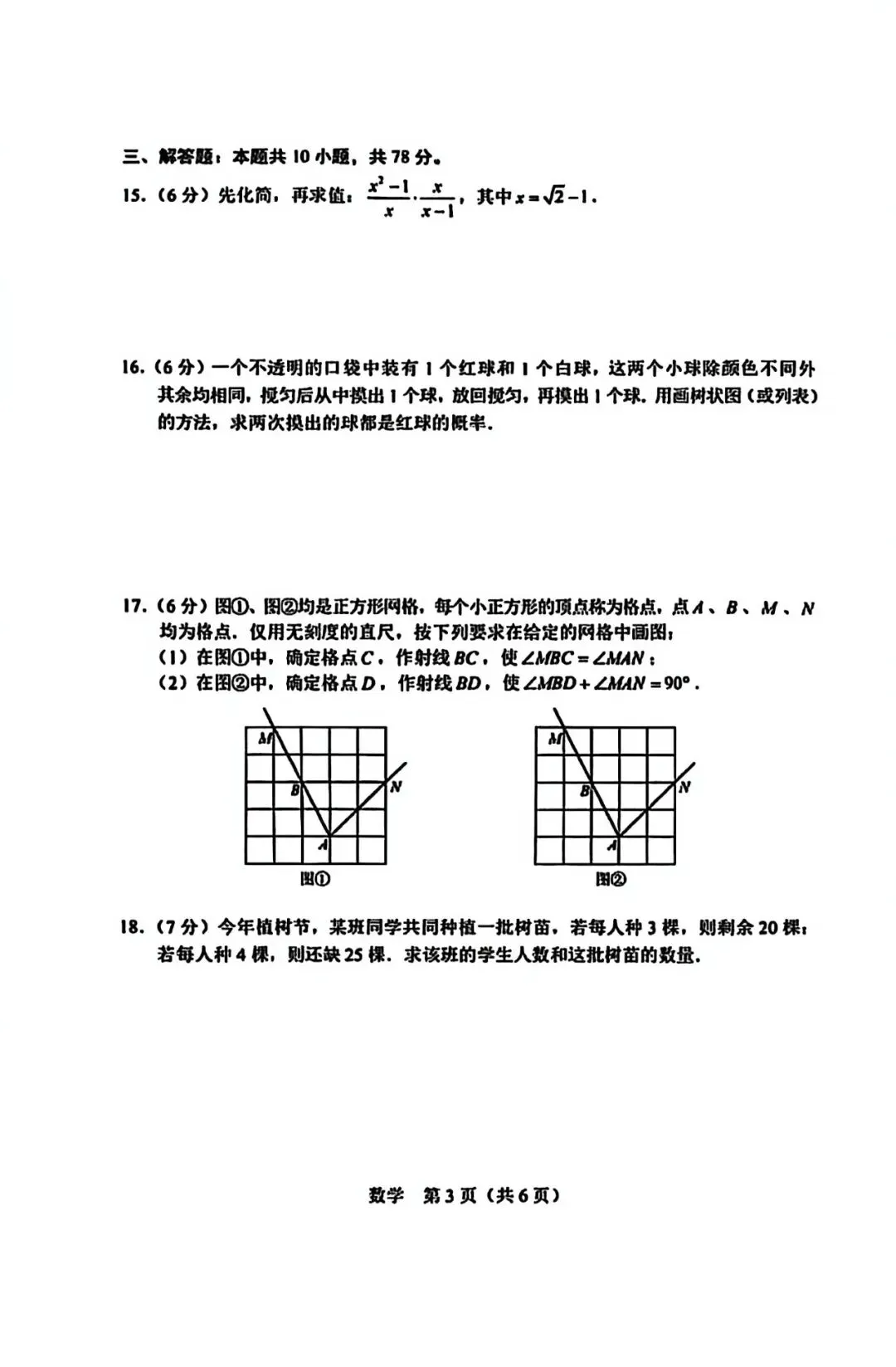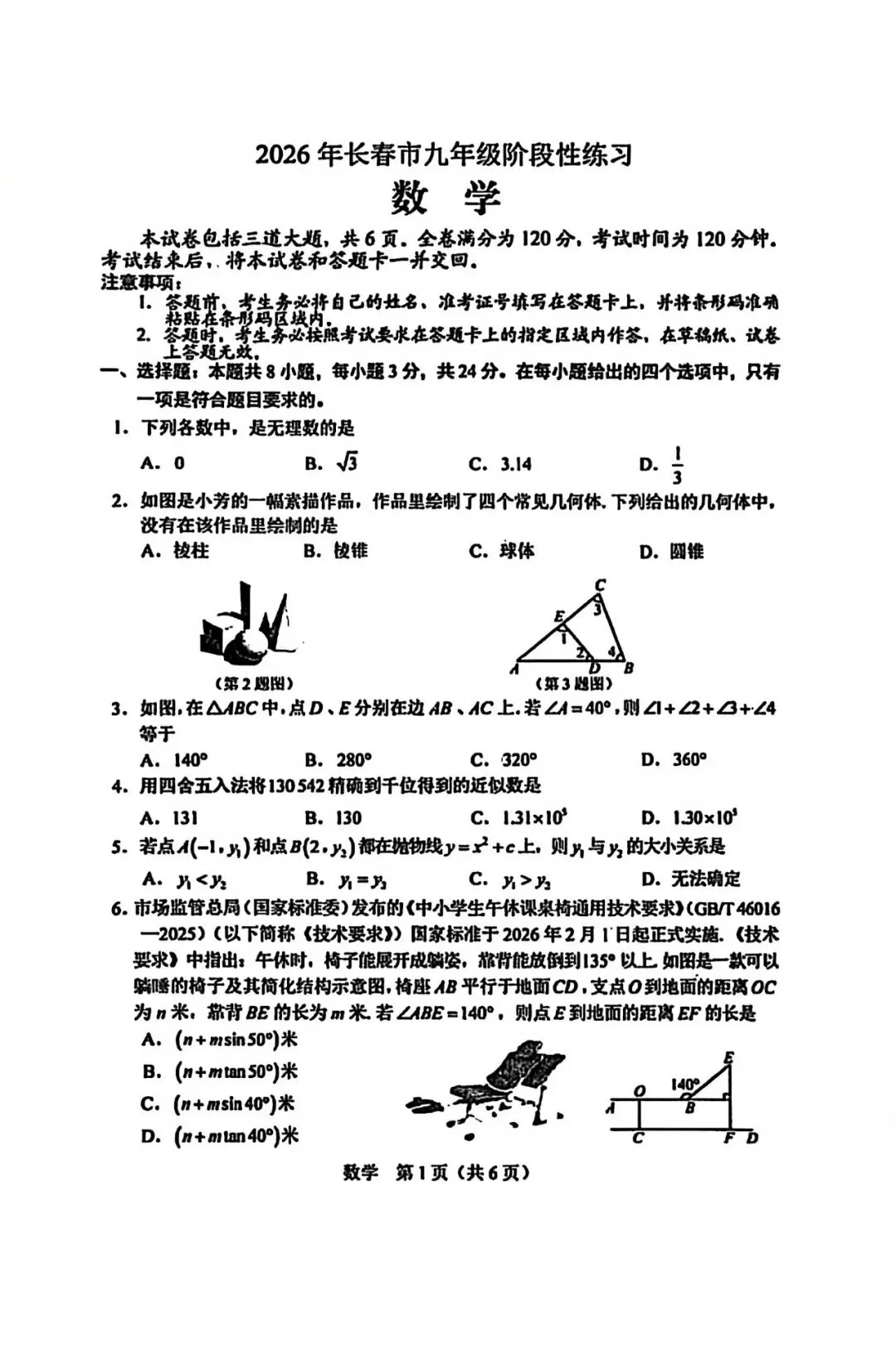 长春2026九年级一模数学试卷