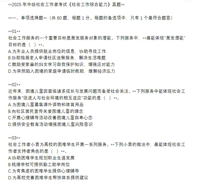 -----------------------------**2025年中级社会工作者考试《社会工作综合能力》真题**
