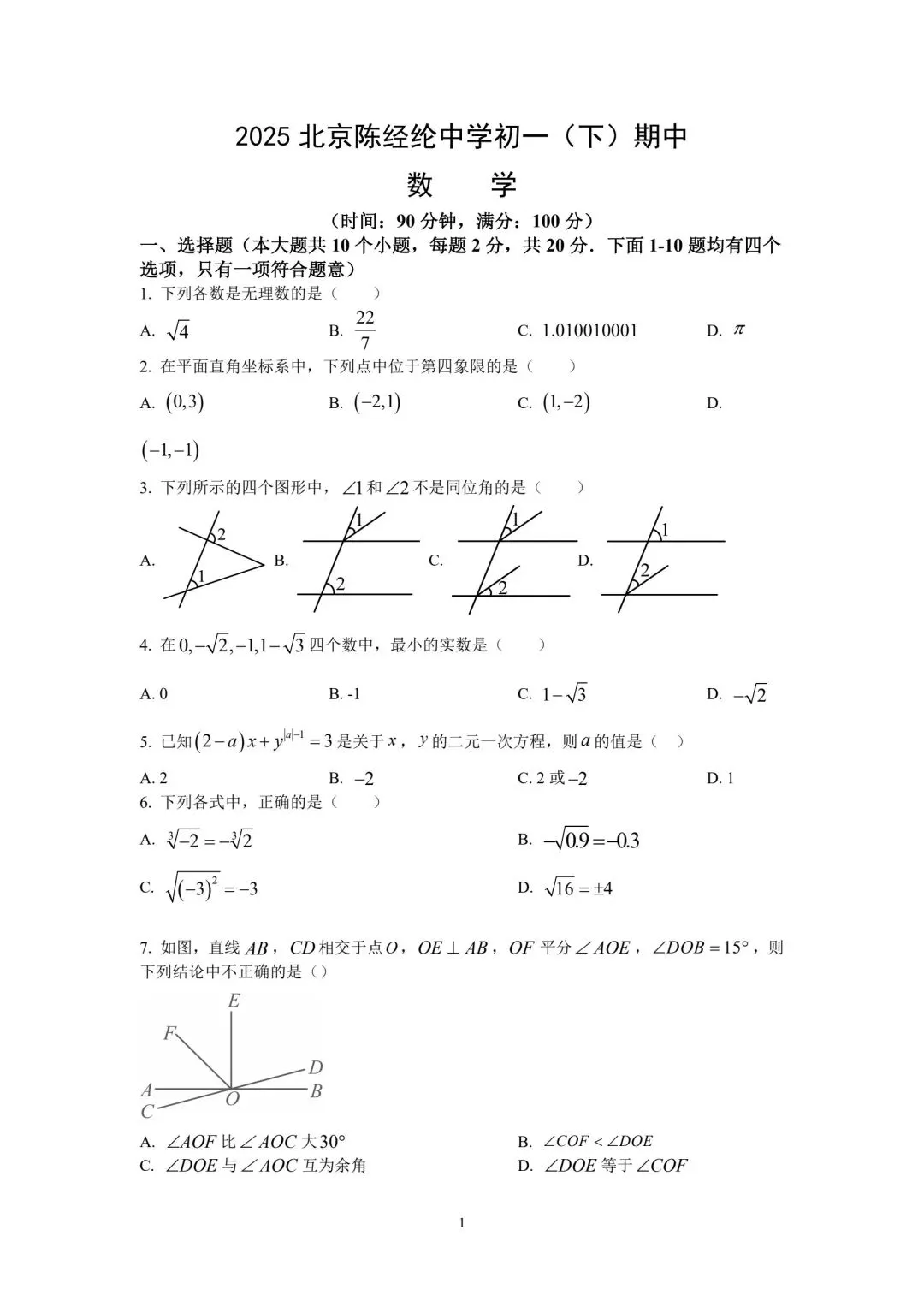 2025年4月陈经纶期中试卷
