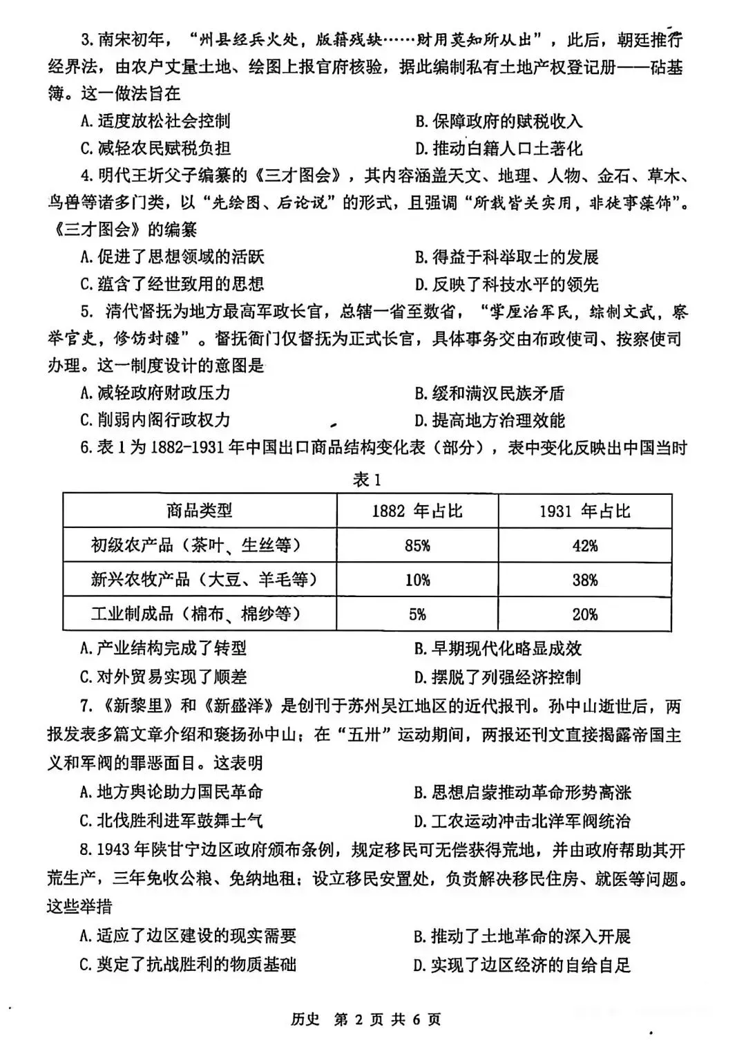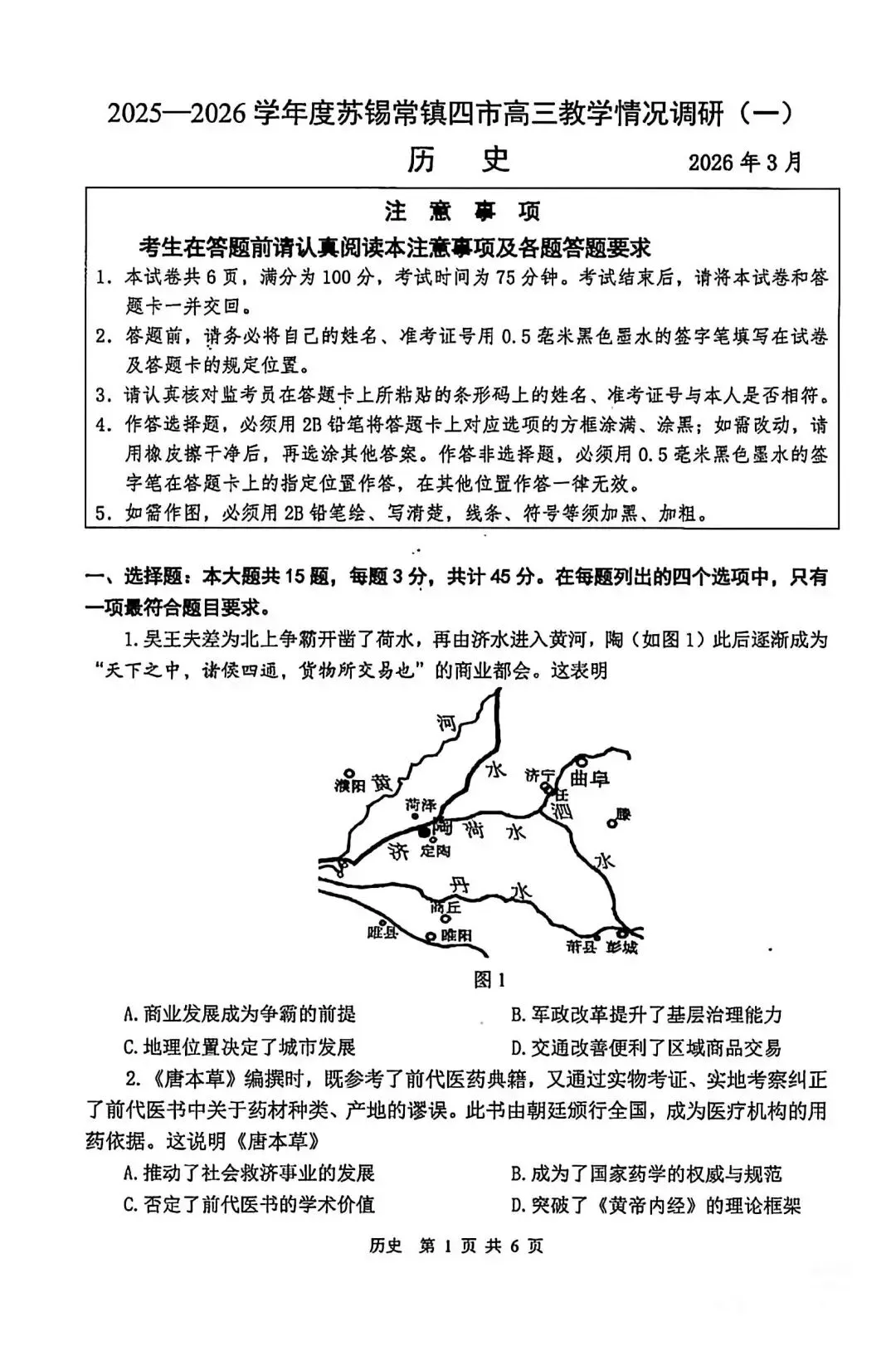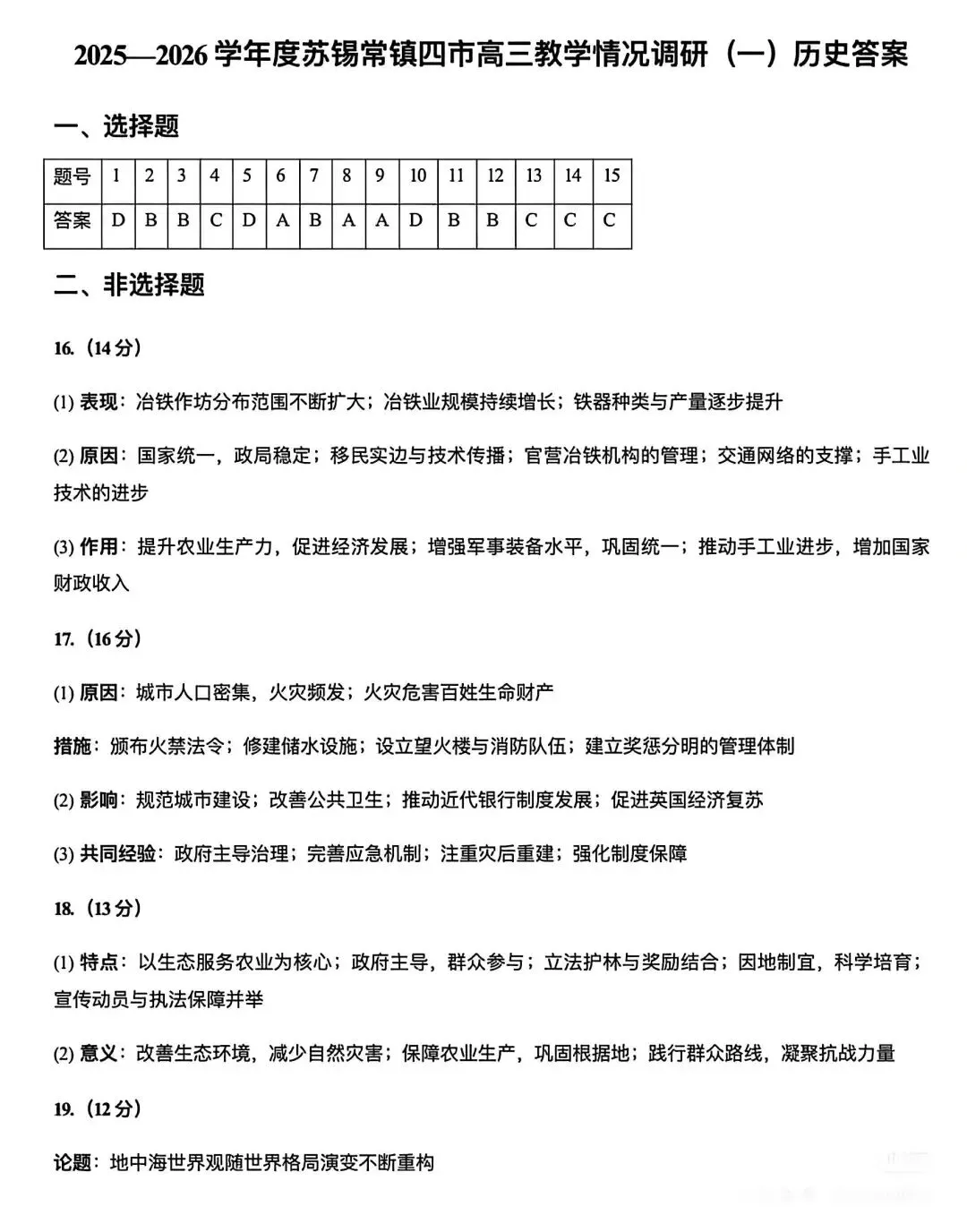 >试卷分享丨 2026届苏锡常镇高三一模历史试卷真题及参考答案