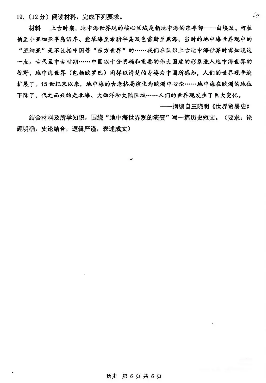2025北京西城高三一模历史试卷(有答案)