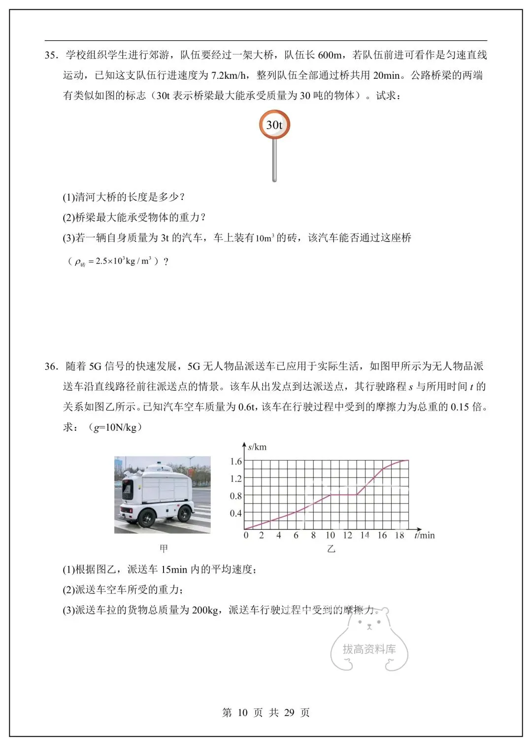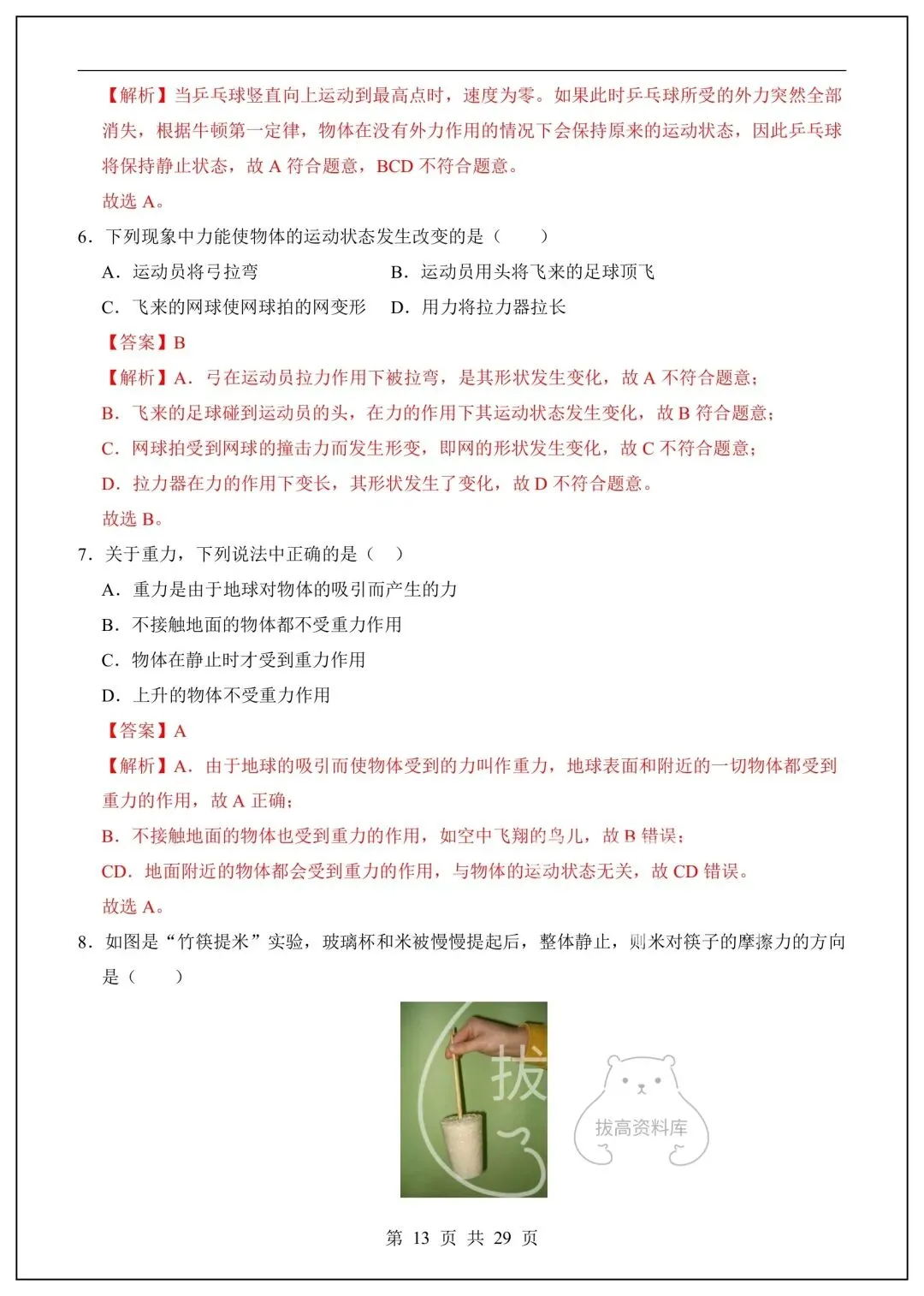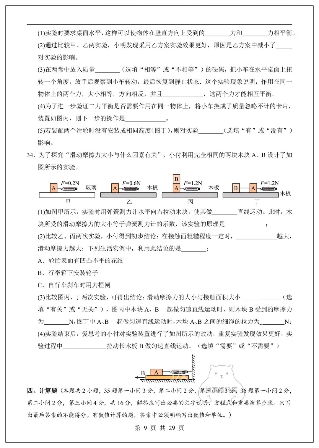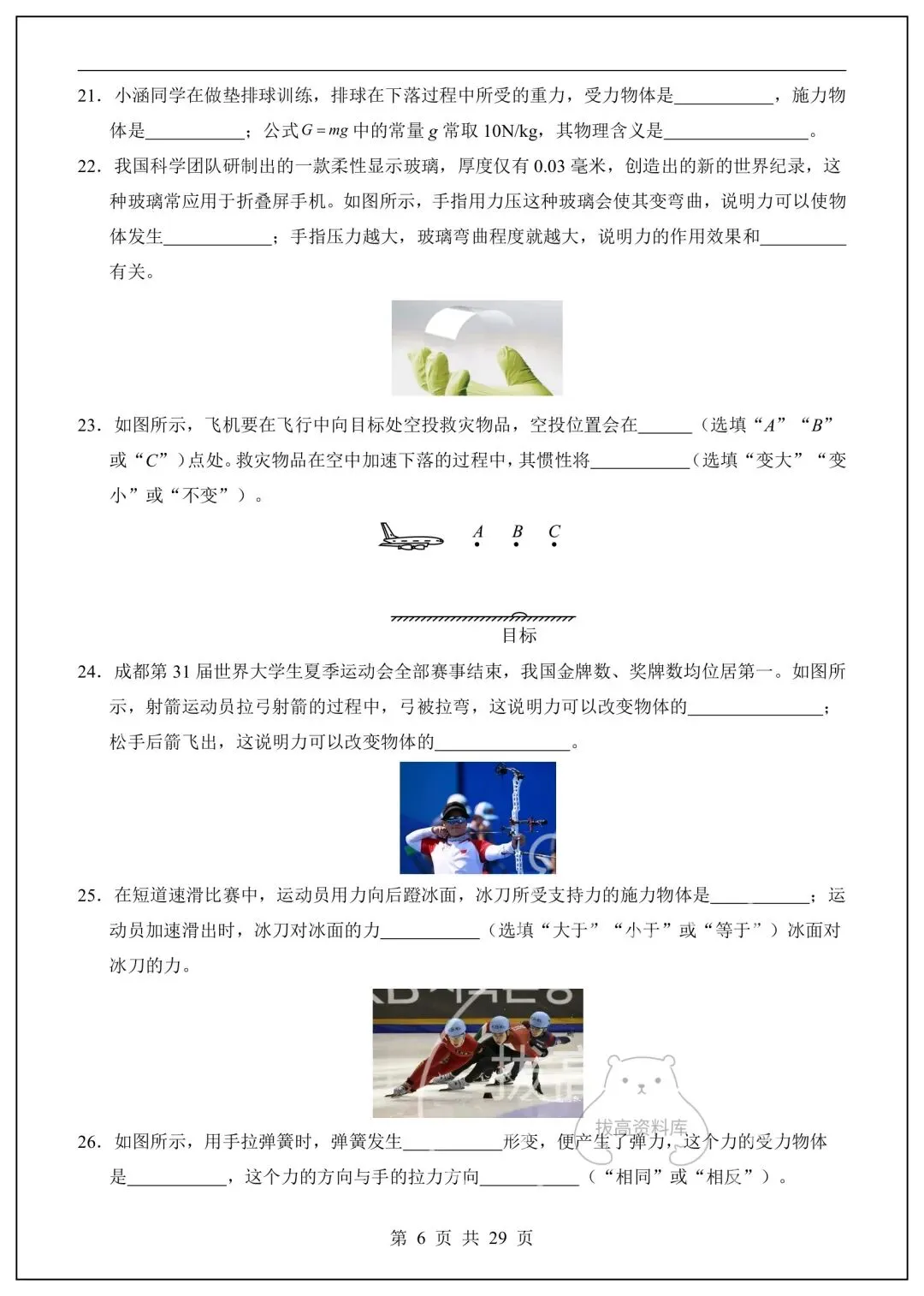 初二八年级物理下册第一次月考试卷+答案,电子版可打印!