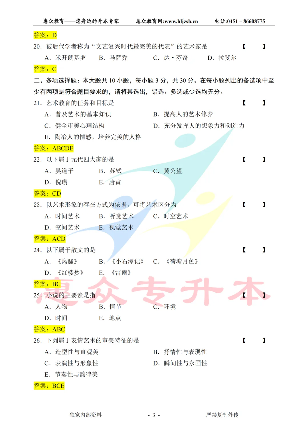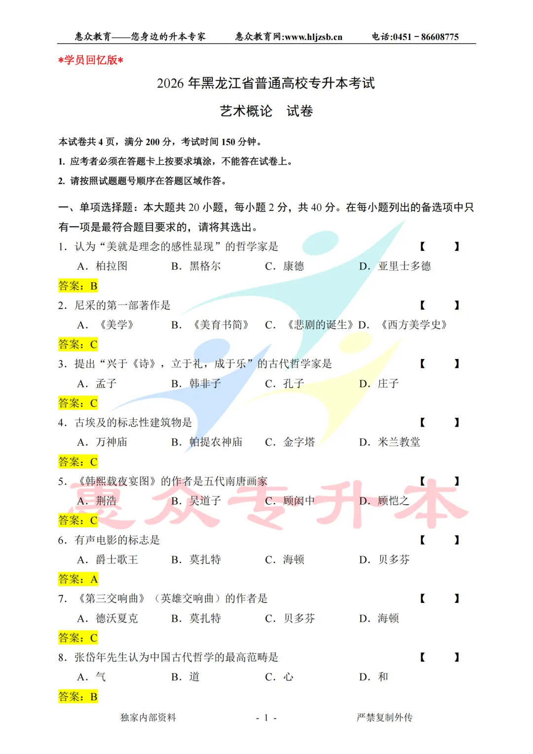 >【艺术概论】2026年统招专升本考试真题(学生回忆版)
