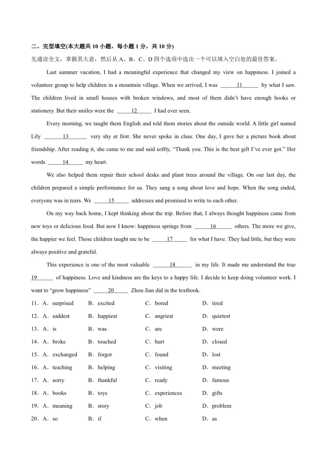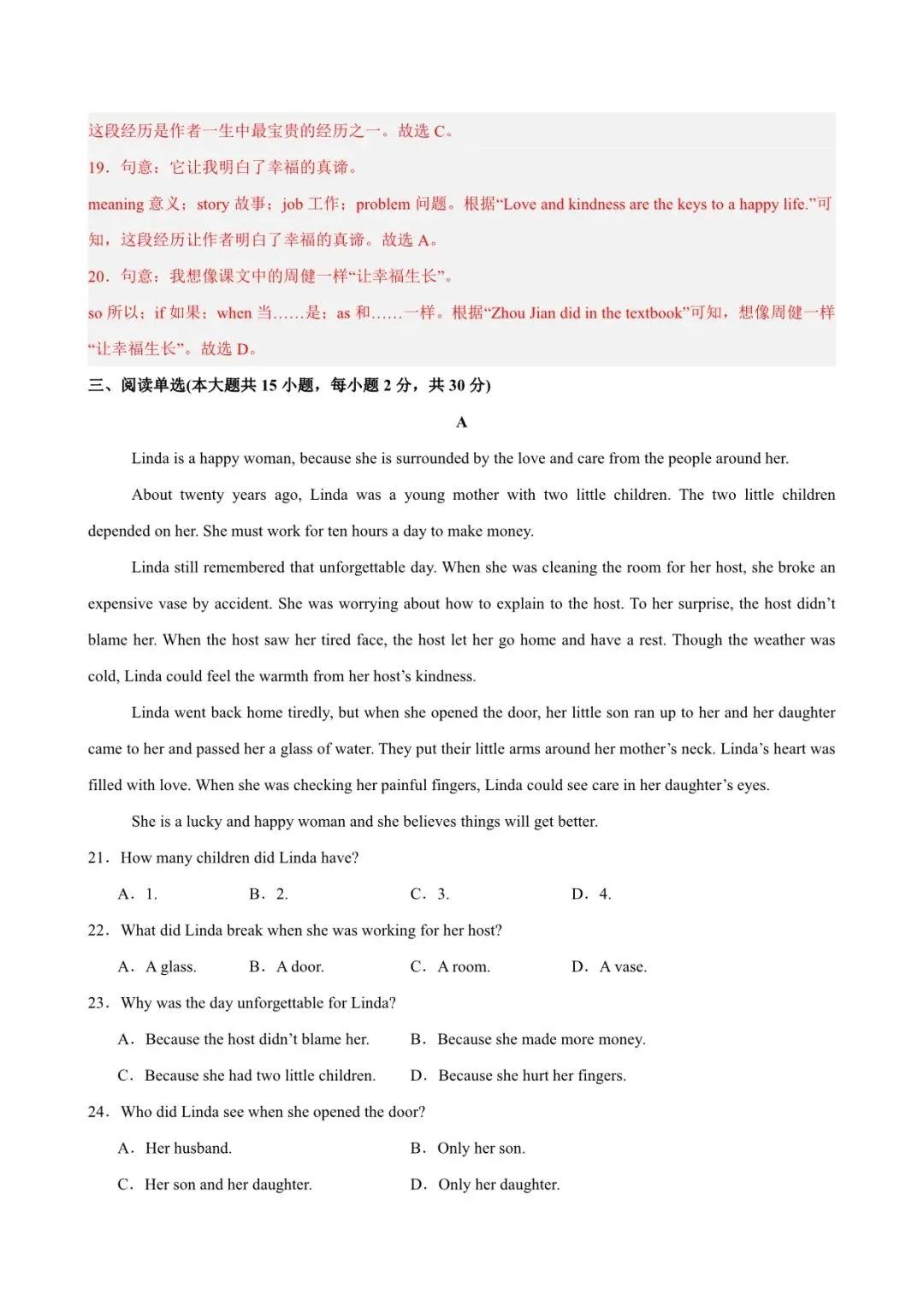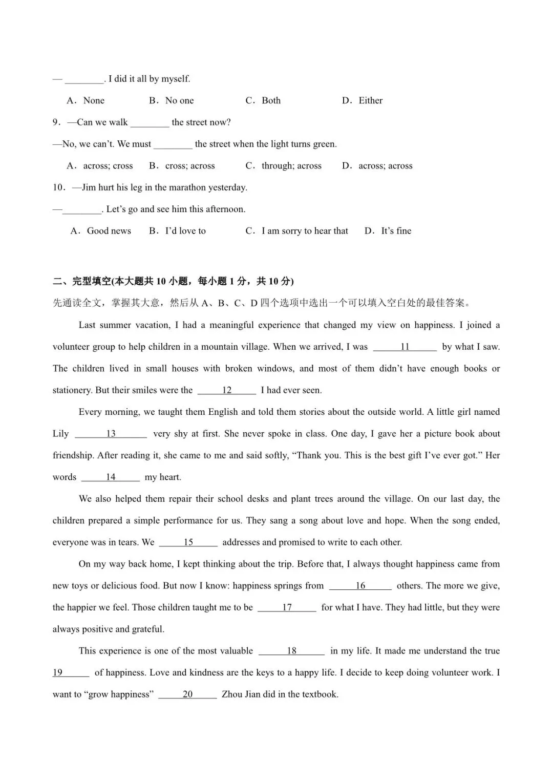 2026 外研版七级下册英语第一次月考试卷(附答案解析),电子版可打印!