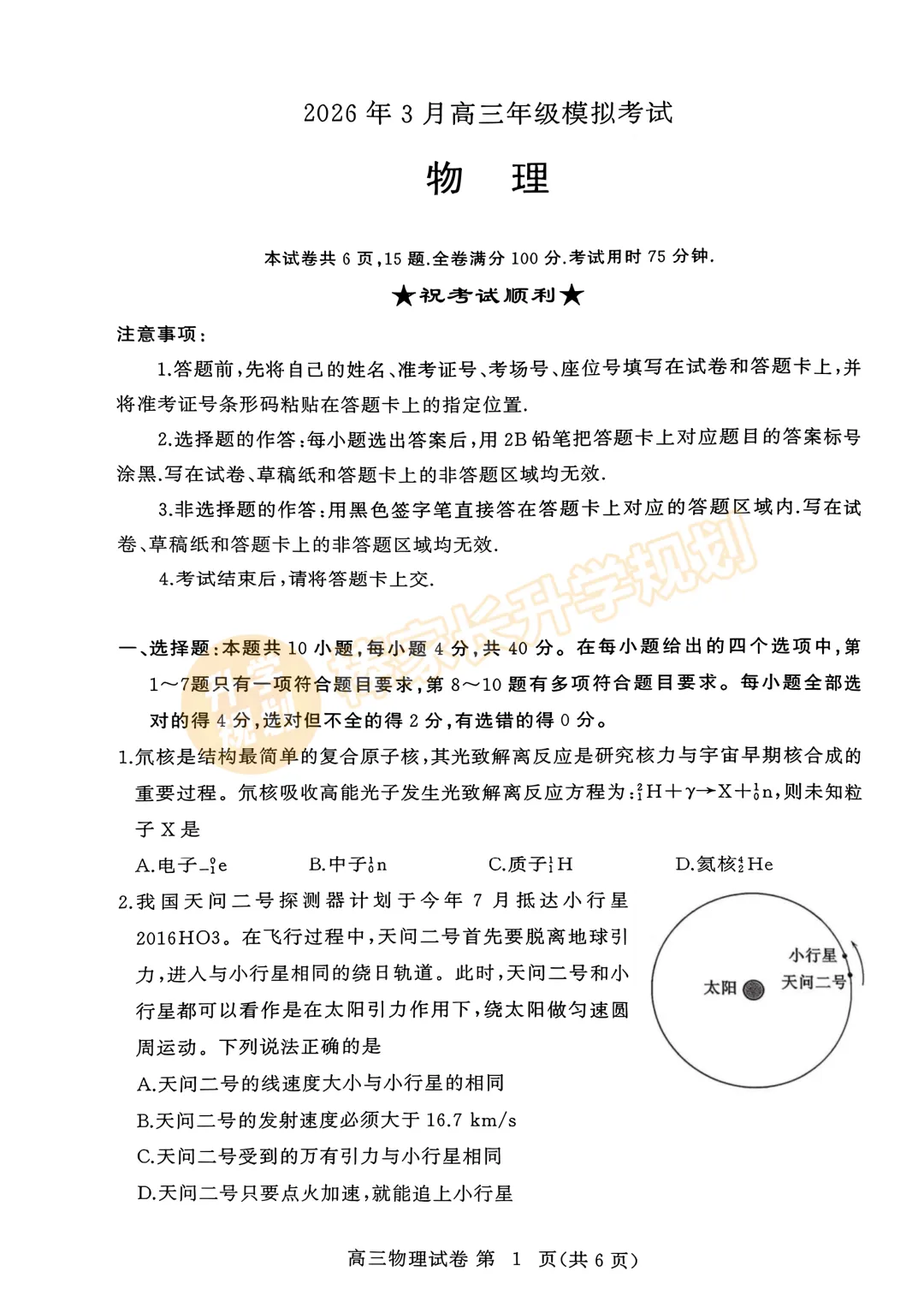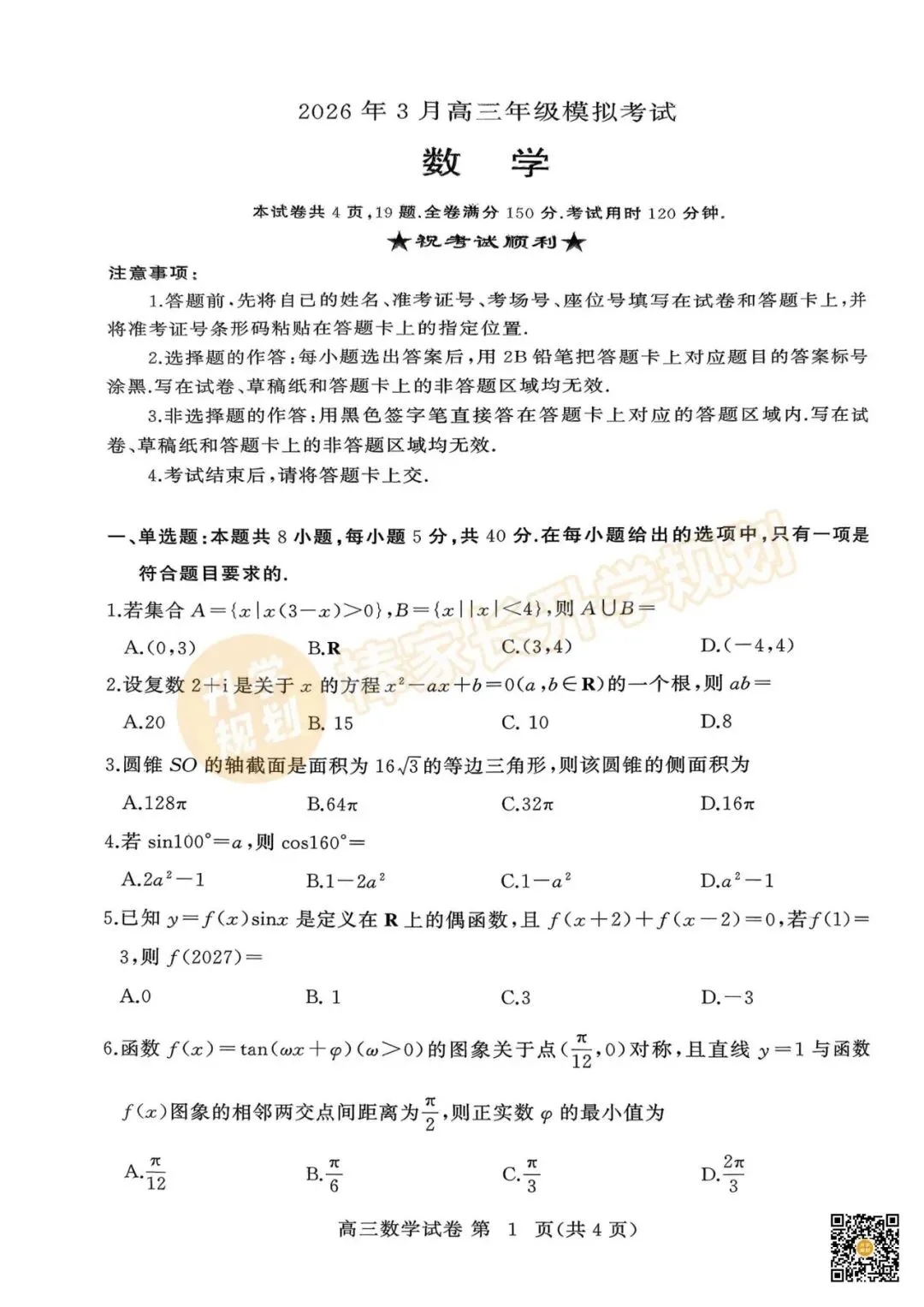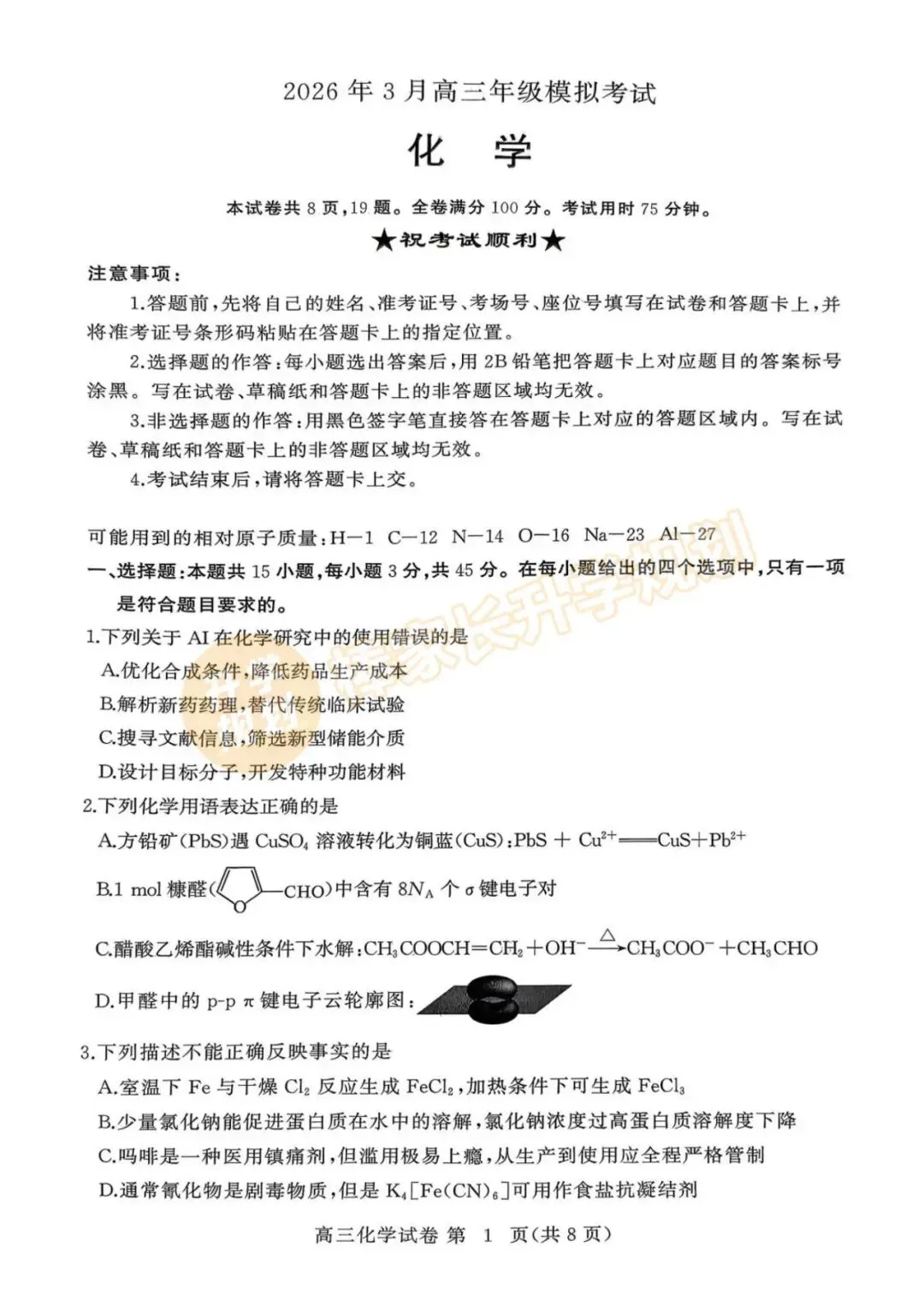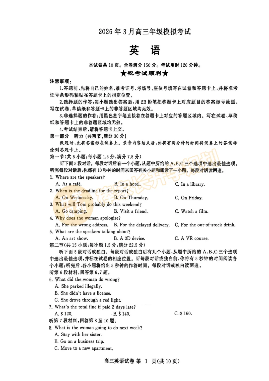 回复【黄冈】,领取2026黄冈高三3月联考试卷答案