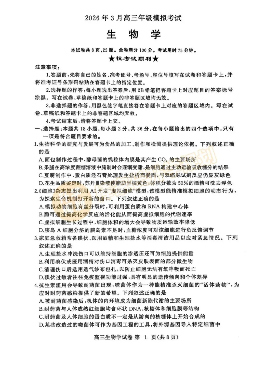 回复【八市州】,领取2026湖北高三3月八市州联考试卷答案