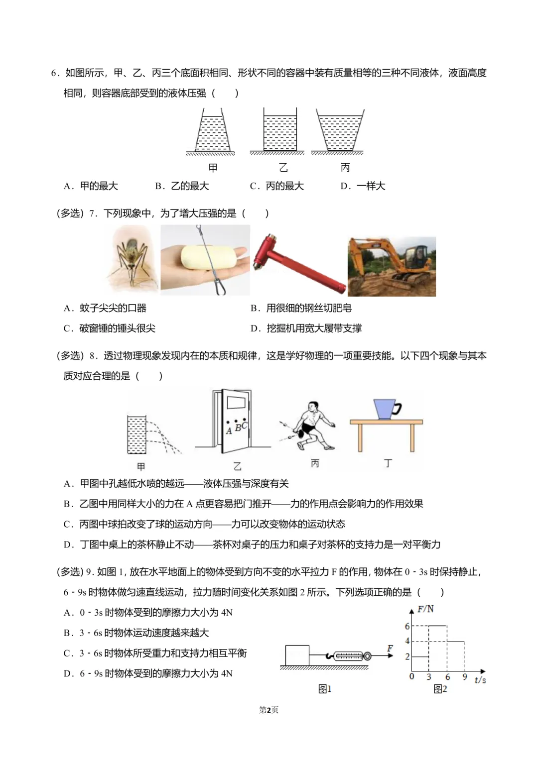 本试卷考察范围为八年级下册第7章到第9章第2节,试卷满分为80分,难度比例7:2:1,重点考查了力学基础、二力平衡、摩擦力、固体压强、液体压强等知识点,具体考点如下~