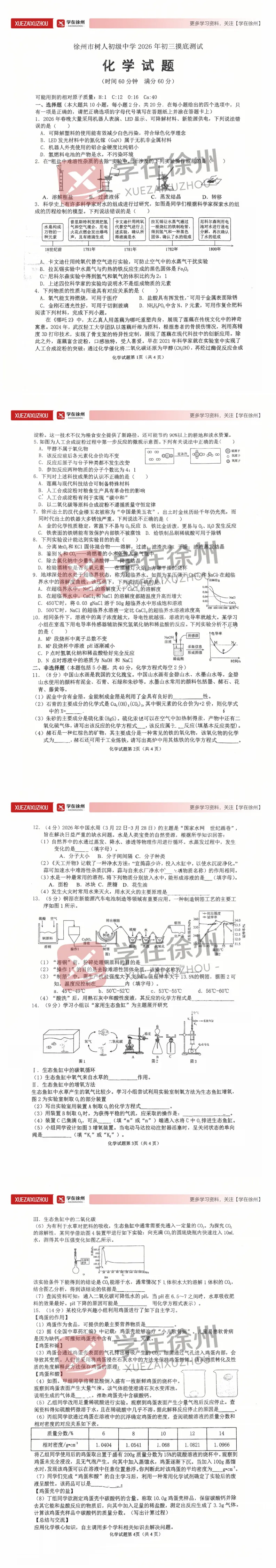 助力中考|2026年树人初三摸底考试试卷分享