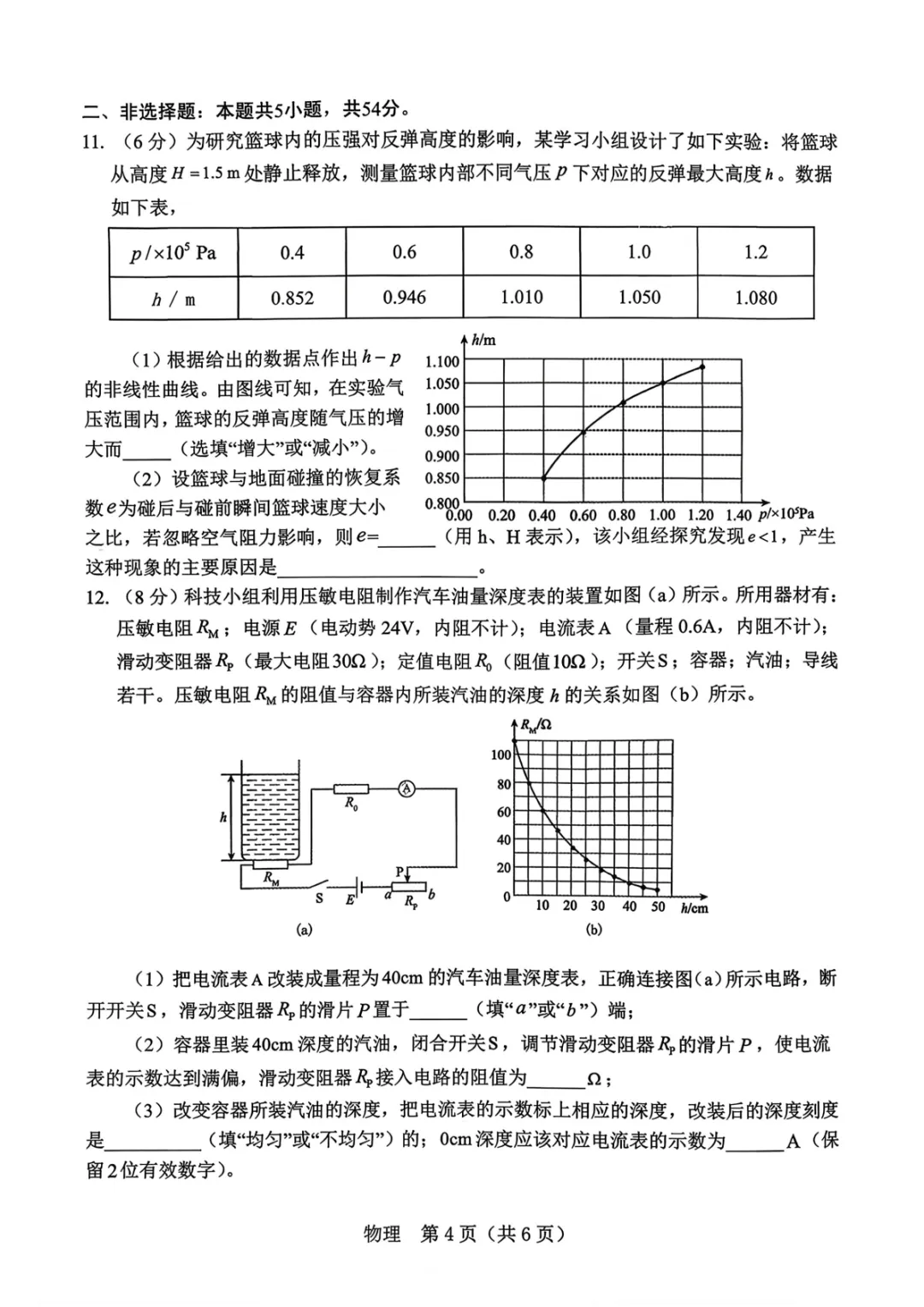 初二八年级物理下册第一次月考试卷+答案,电子版可打印!