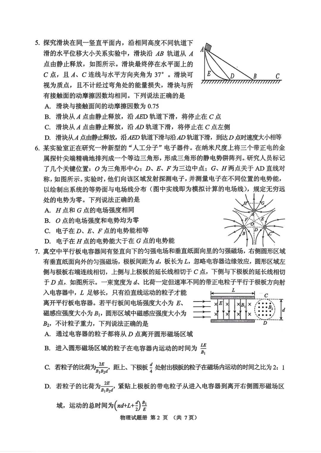 >2026届抚顺市高三一模考试物理试卷+答案