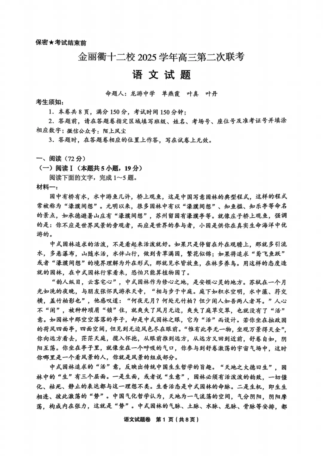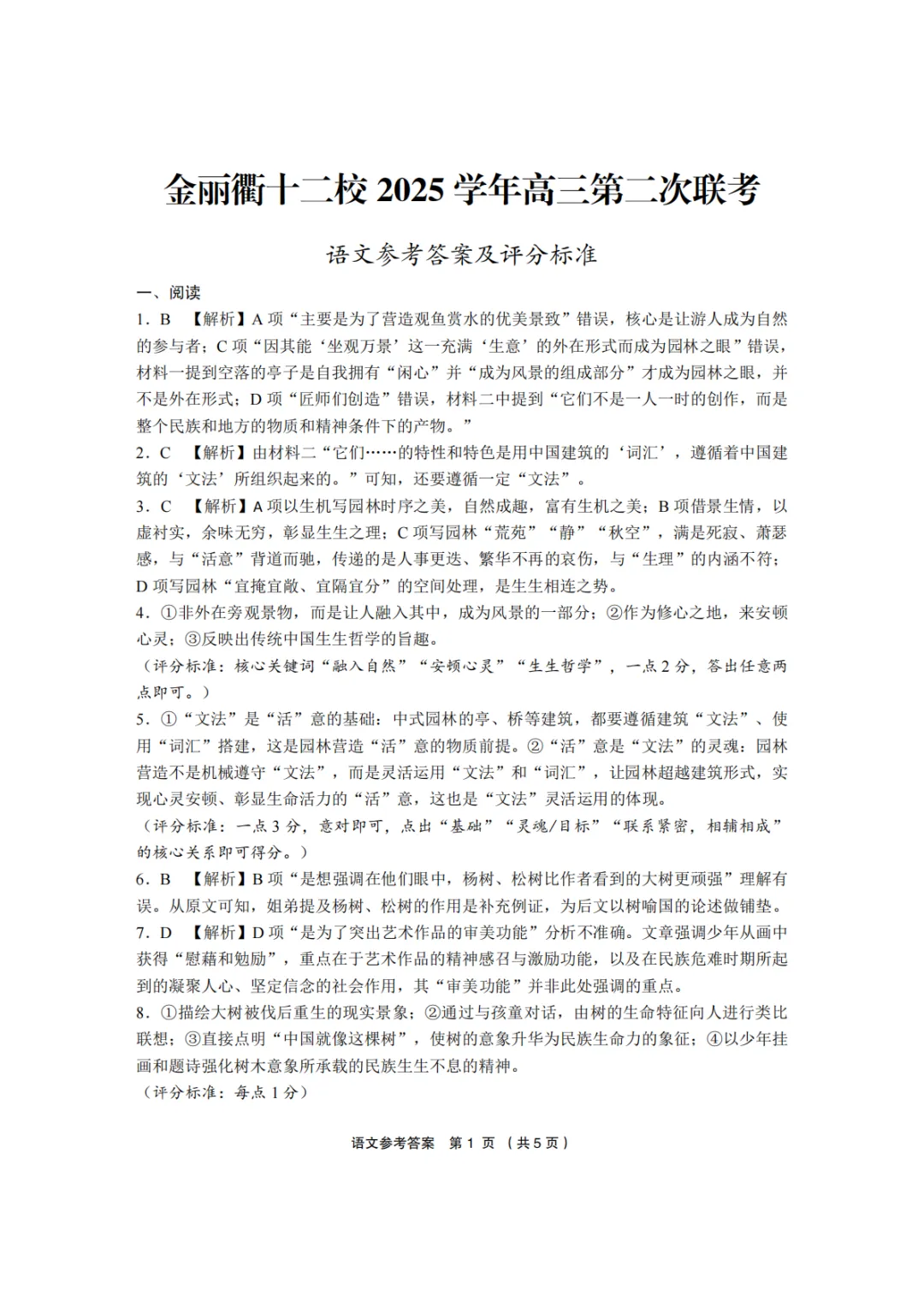 2026年3月高三金丽衢十二校联考语文试卷及答案