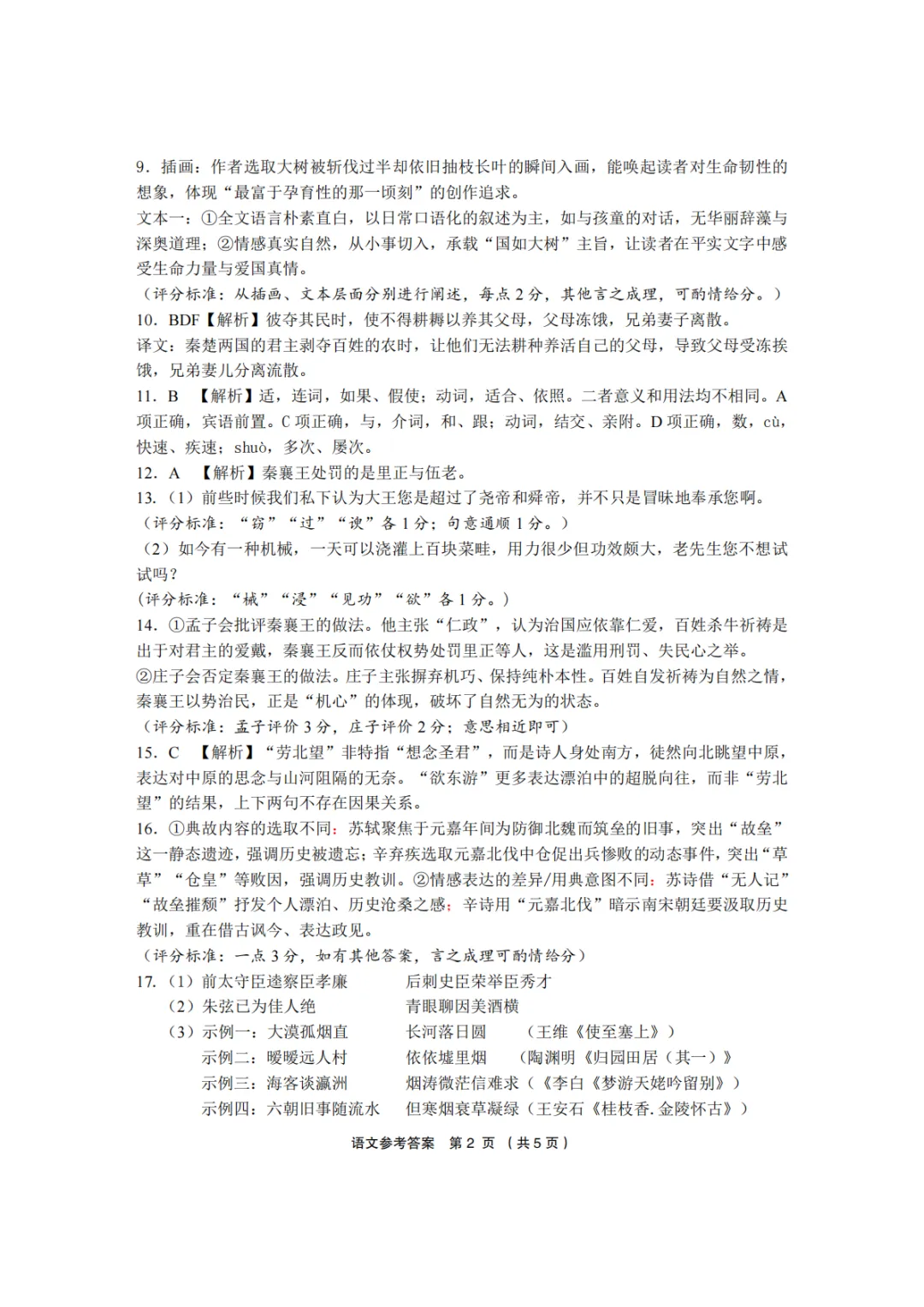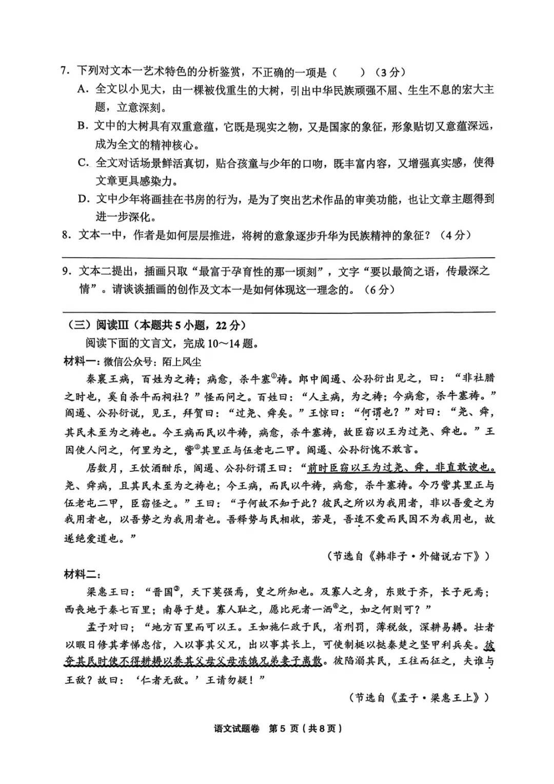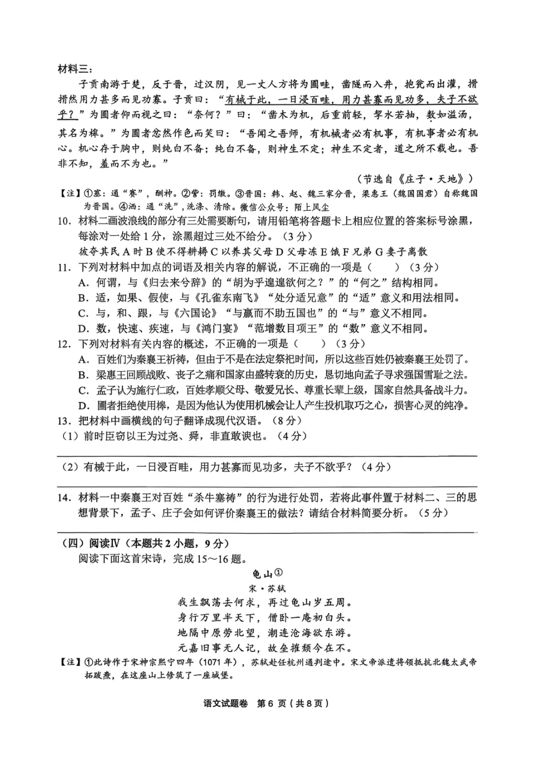 2026年3月高三宁波十校联考语文试卷及答案
