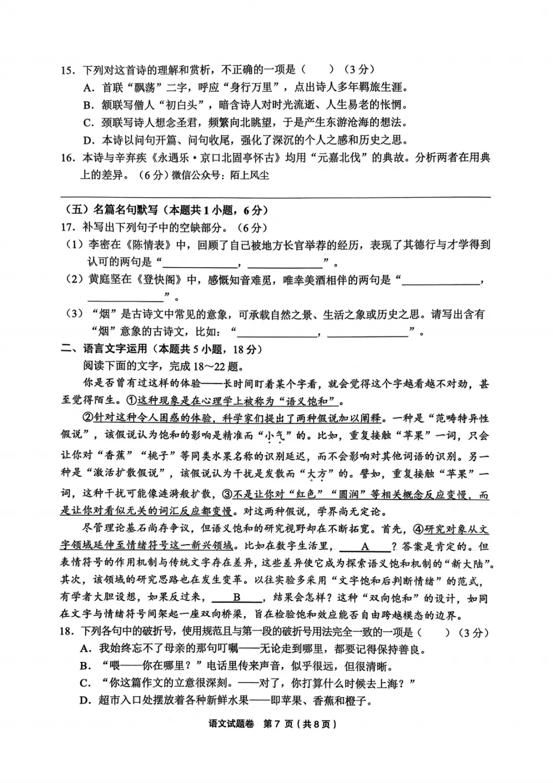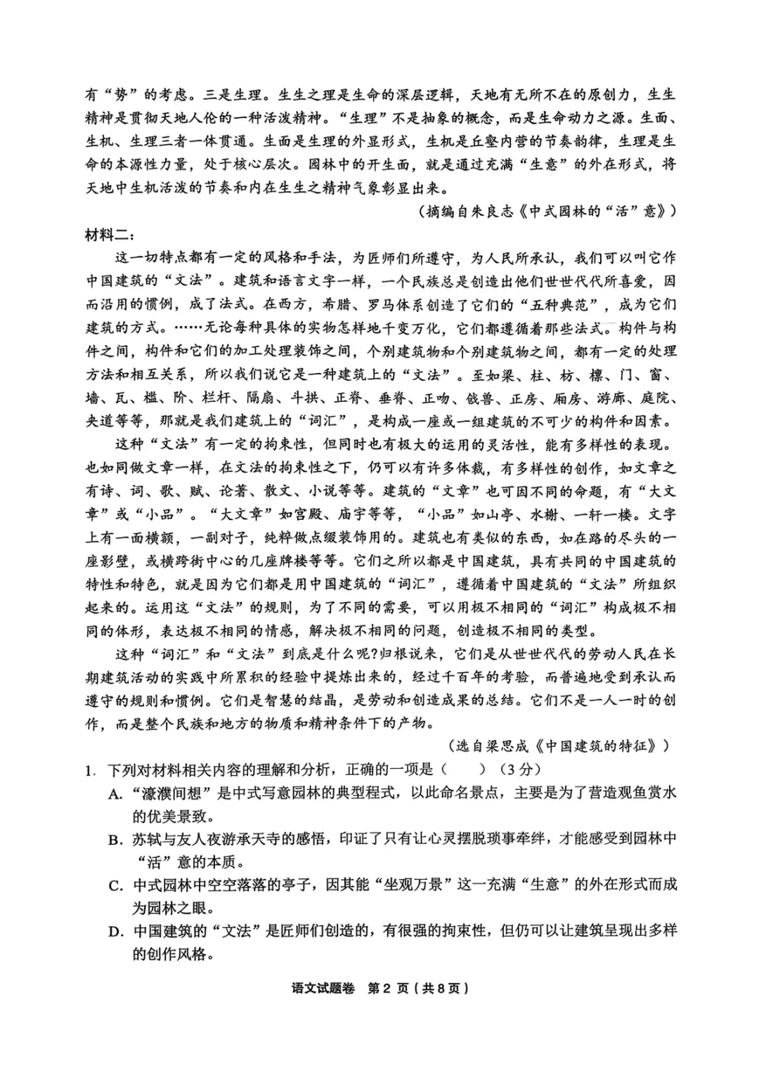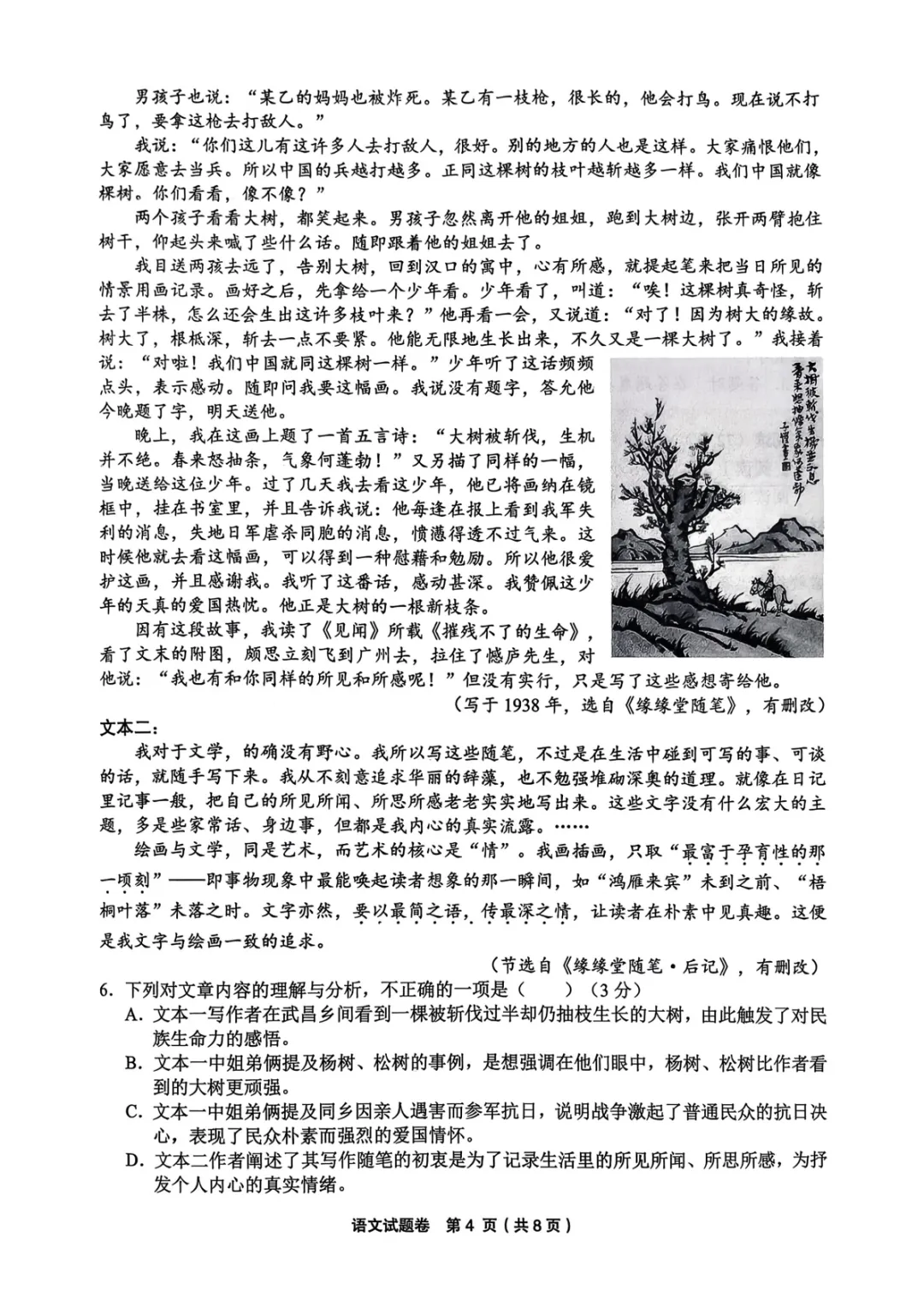2026年3月高三宁波十校联考语文试卷及答案