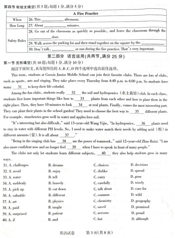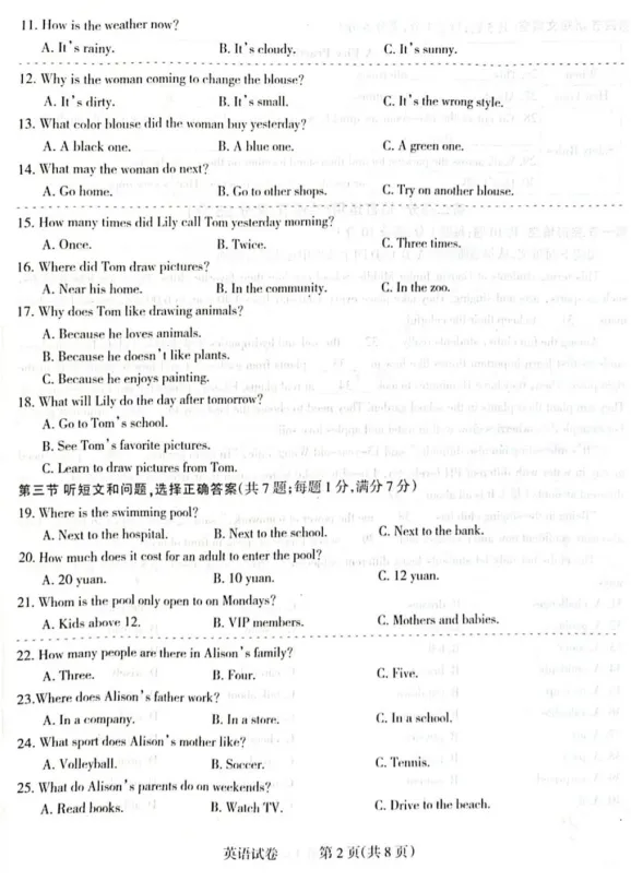 2025.3石家庄长安区初三一模英语试卷(含答案)