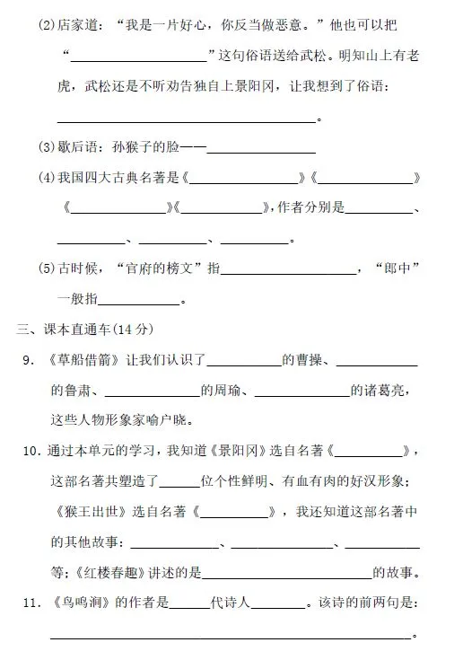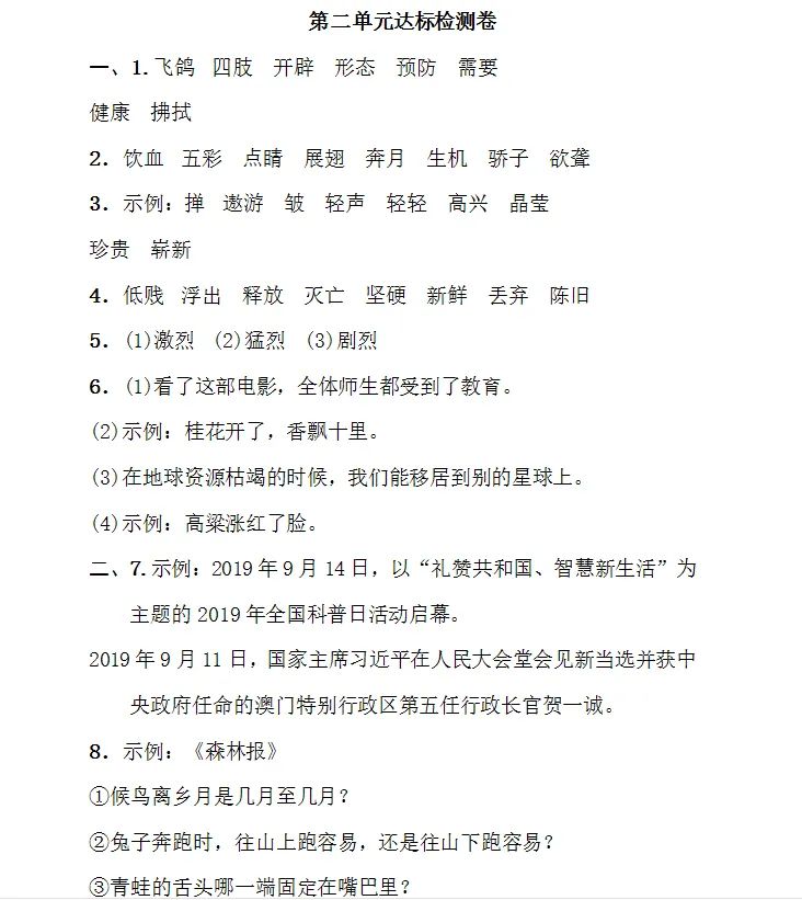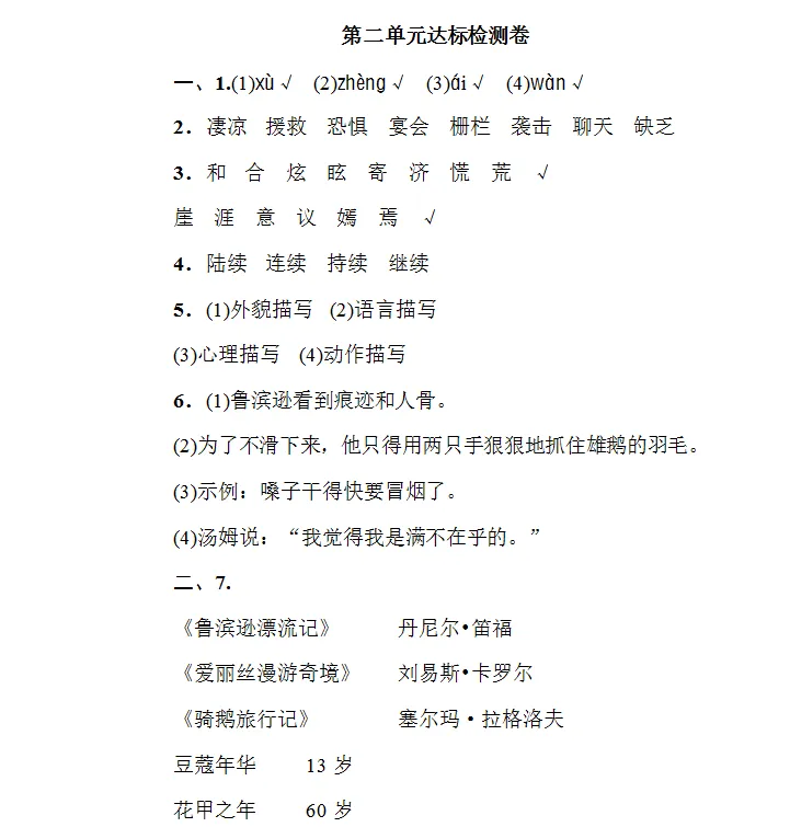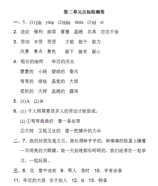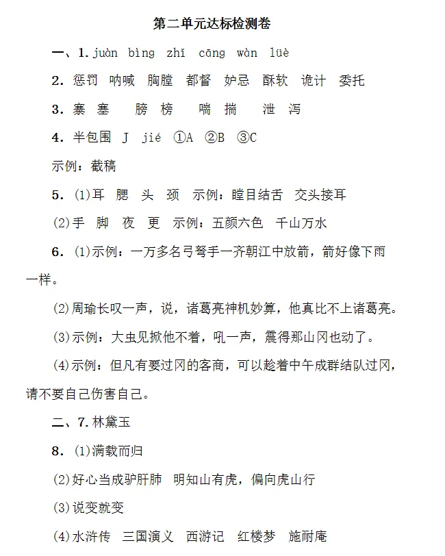 >统编1-6年级语文(下册)第二单元精品试卷及答案