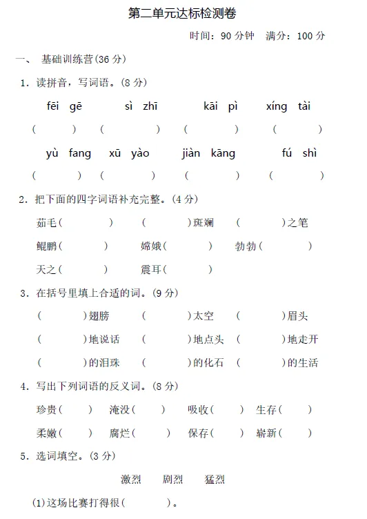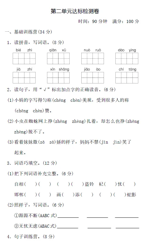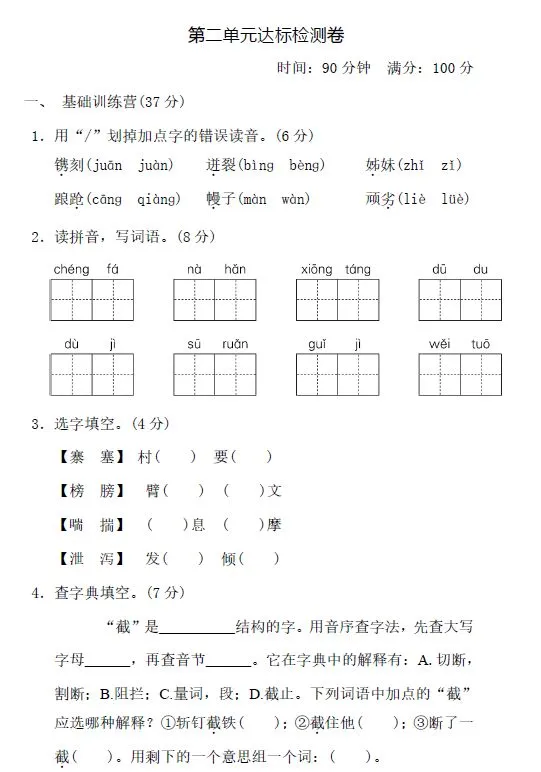 26春《典中点-试卷》人教语文4下单元试卷分享