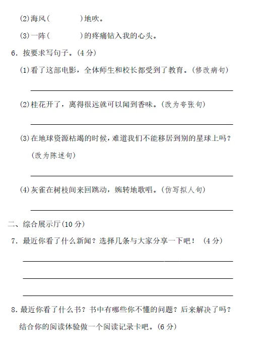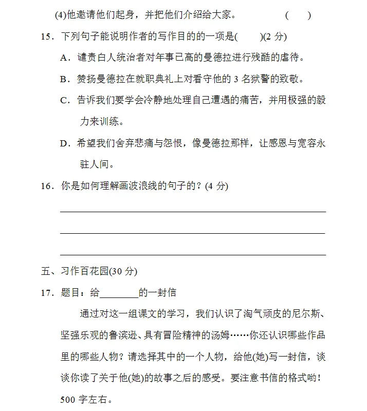 四年级下册第一单元试卷考场作文主题:孤独时候的慰藉
