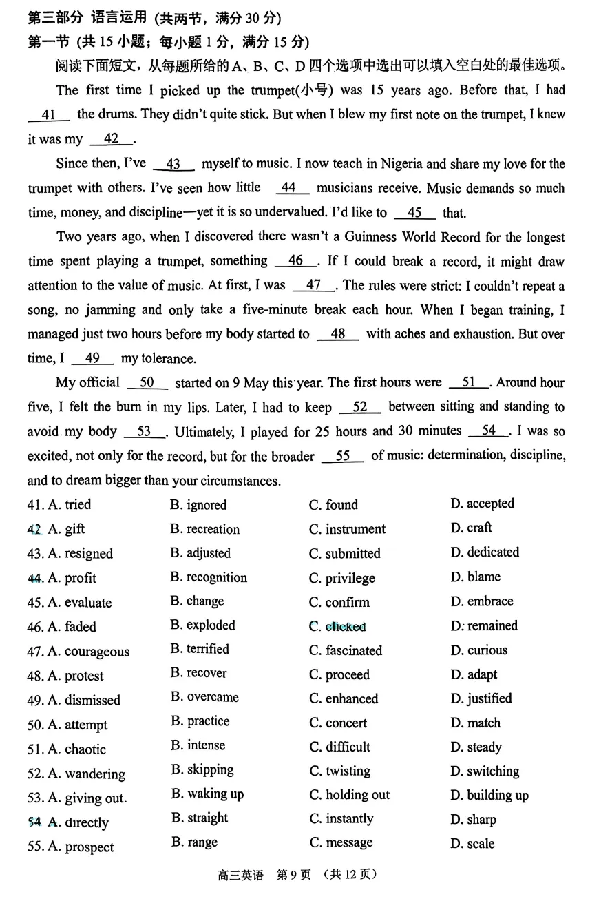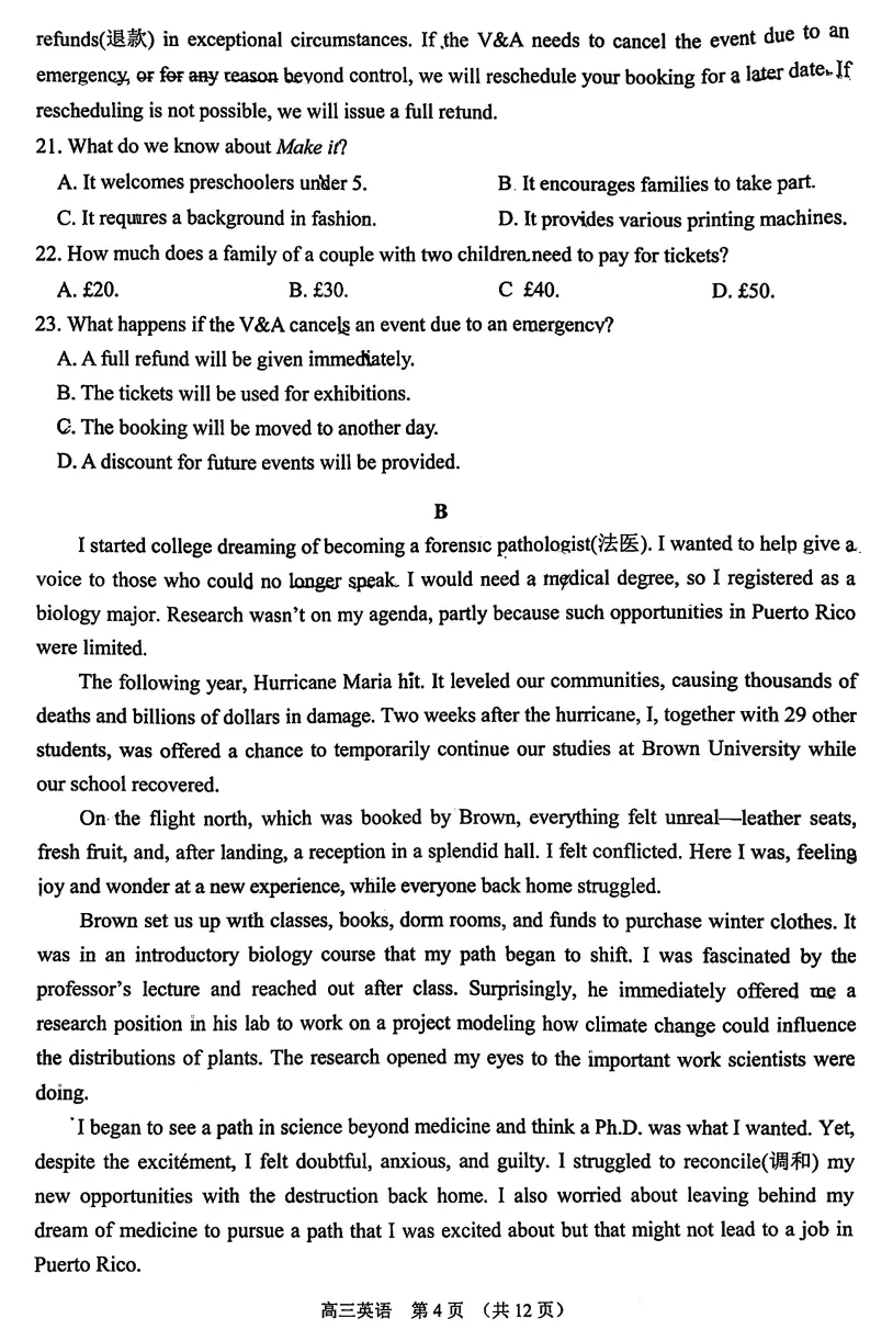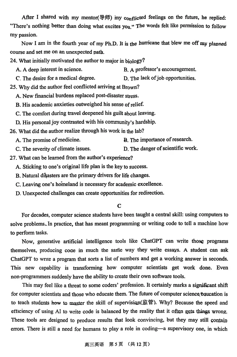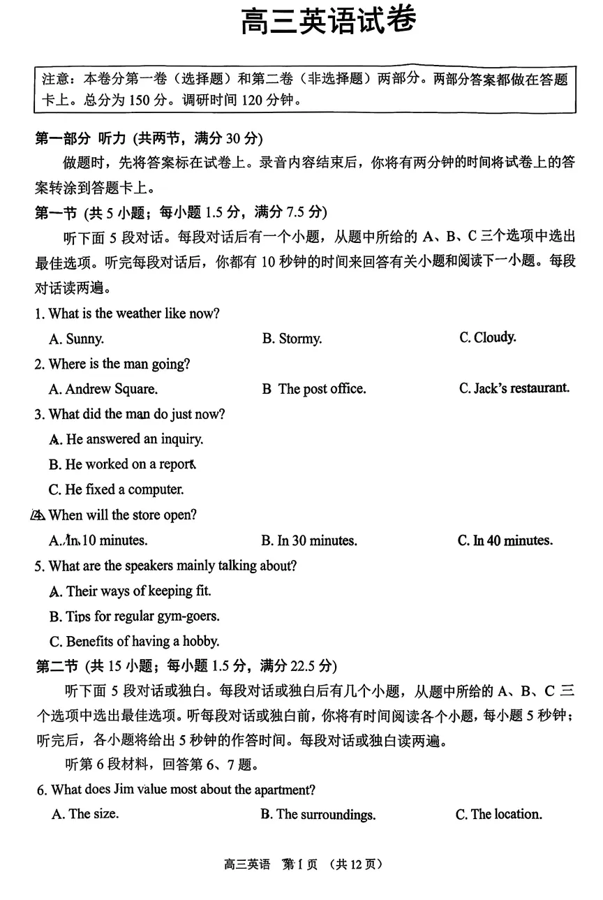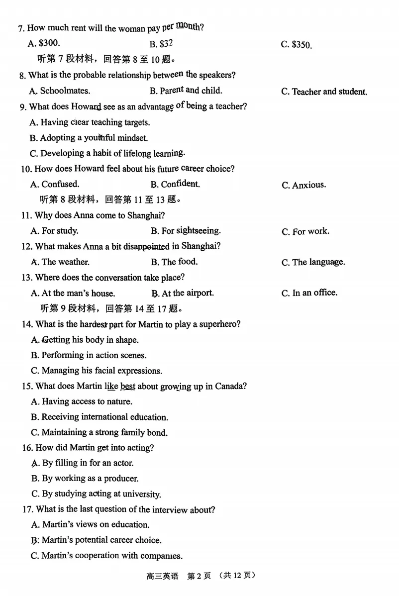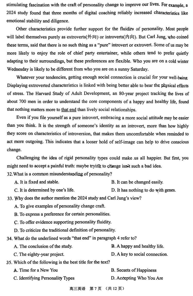 >试卷推荐:2026届苏锡常镇一模英语试卷