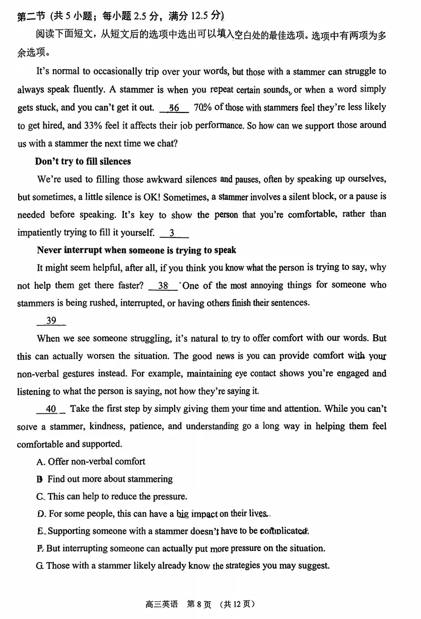 2025.3石家庄长安区初三一模英语试卷(含答案)