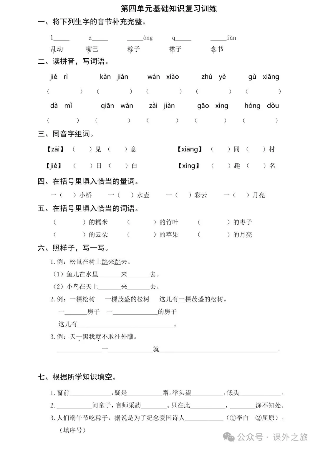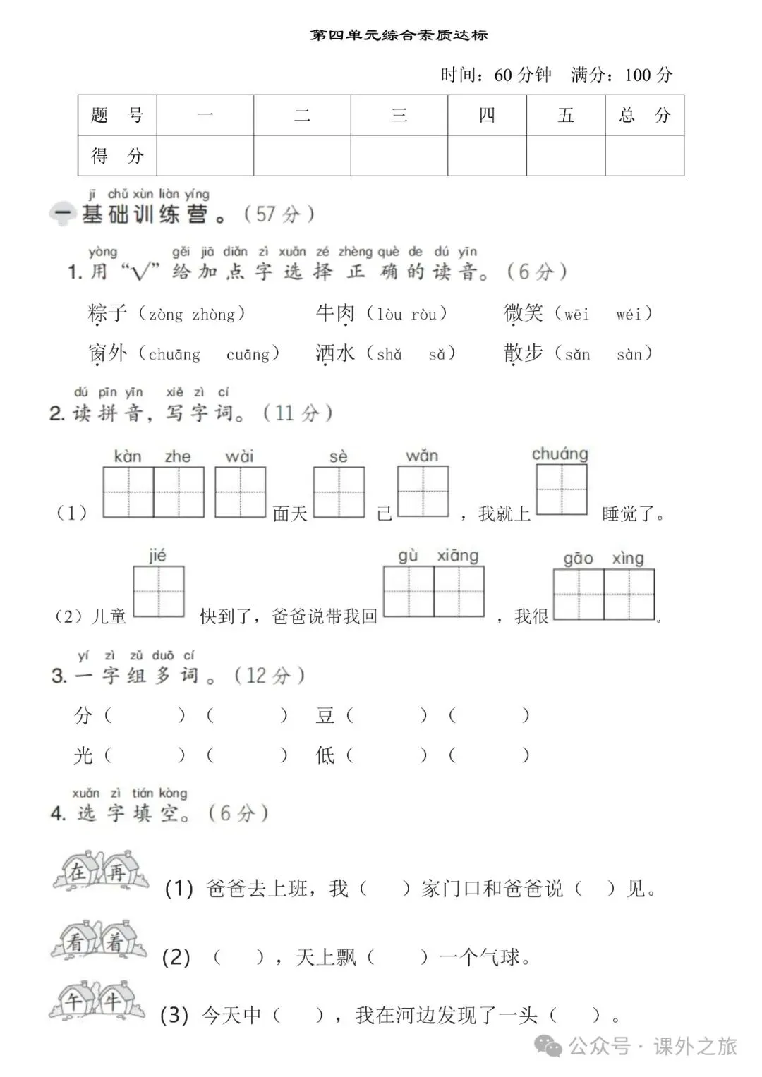 冬冬老师今天给大家整理了统编版语文一年级(下册)第四单元测试卷(含答案),请各位家长打印给孩子练练,更好的巩固所学的知识点!