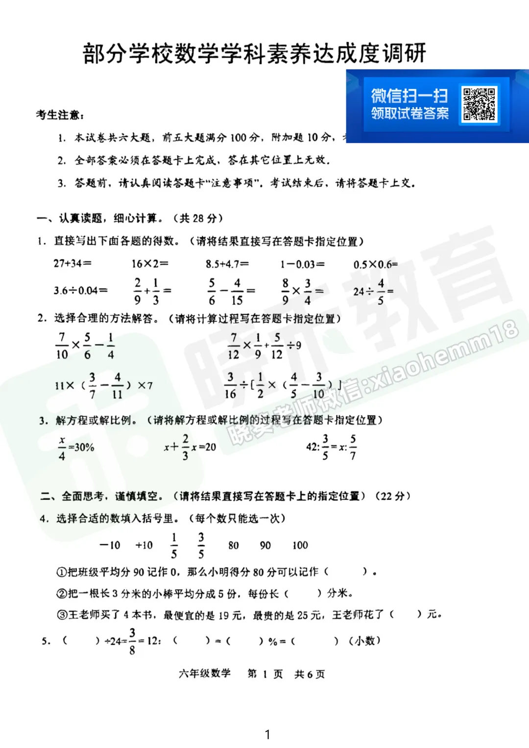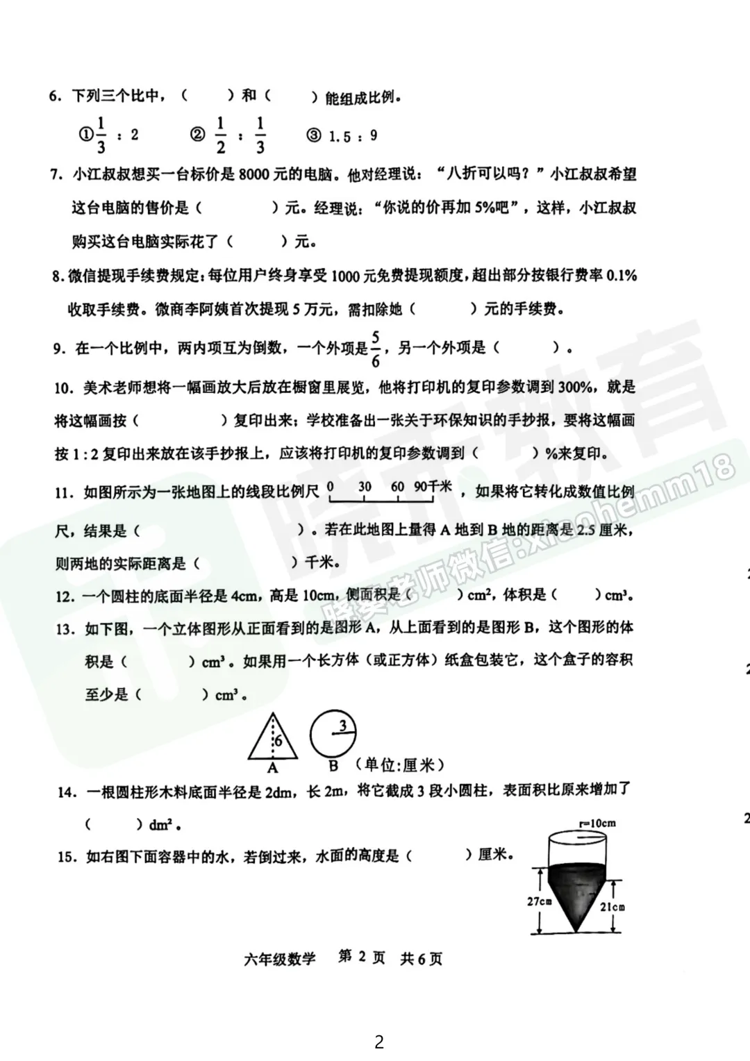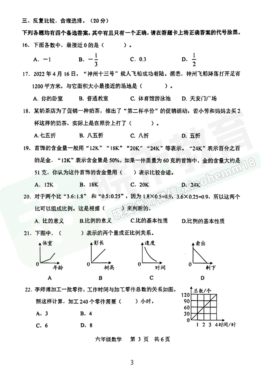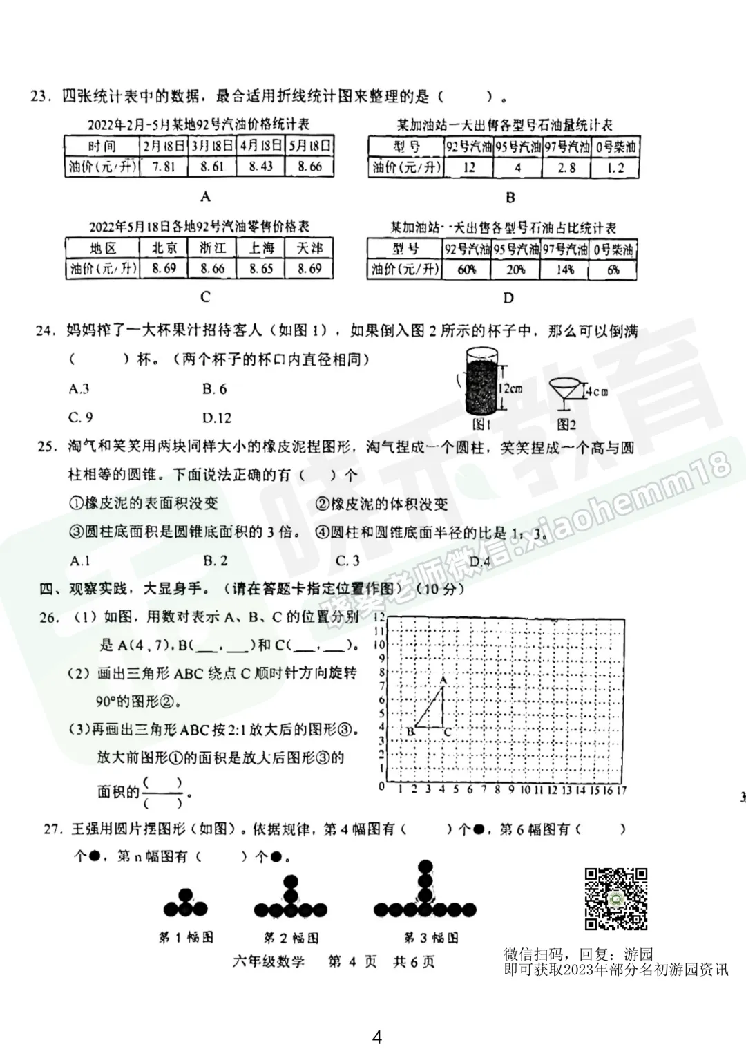 2023年武昌区6下4调数学试卷