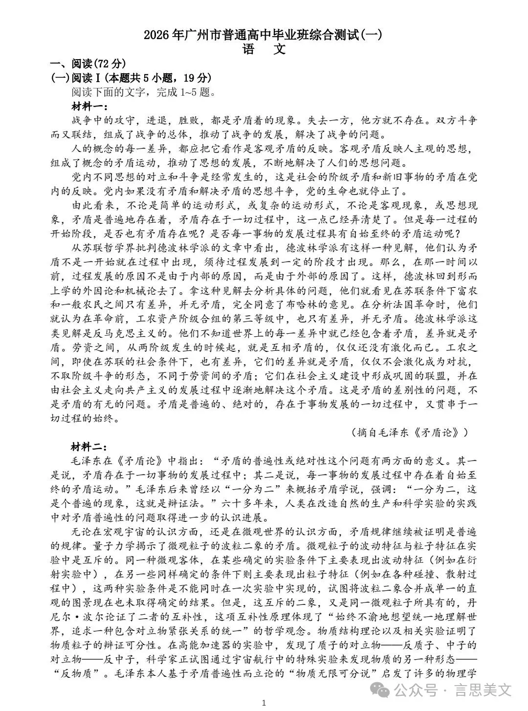 2026广州市高三一模试卷、答案,作文审题立意及范文两篇!