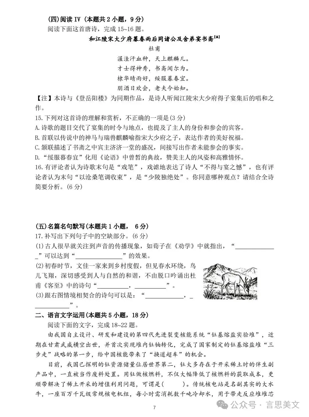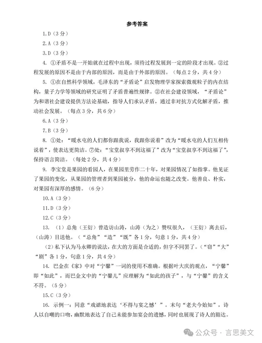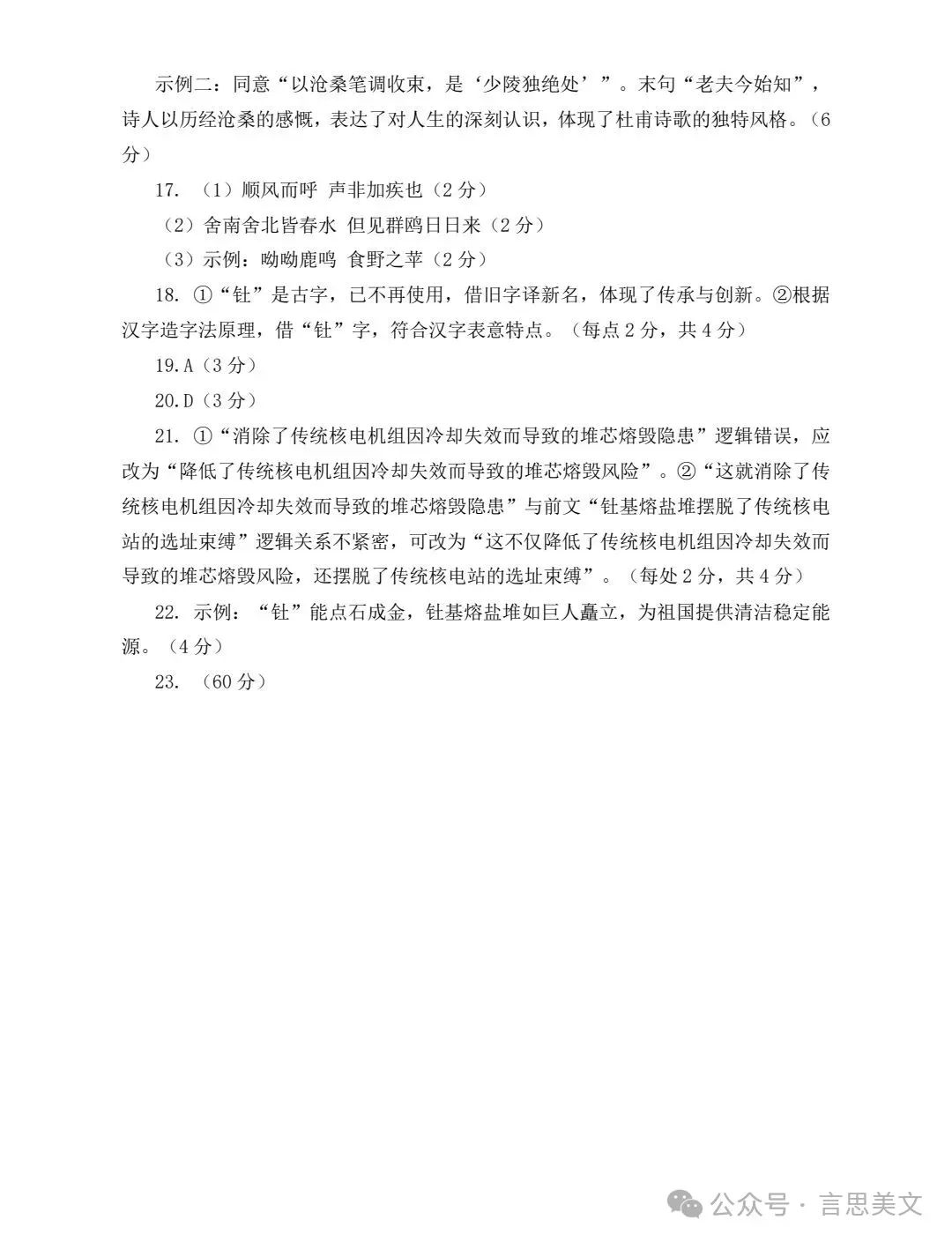 ▲试卷及答案转自言思美文,致谢!