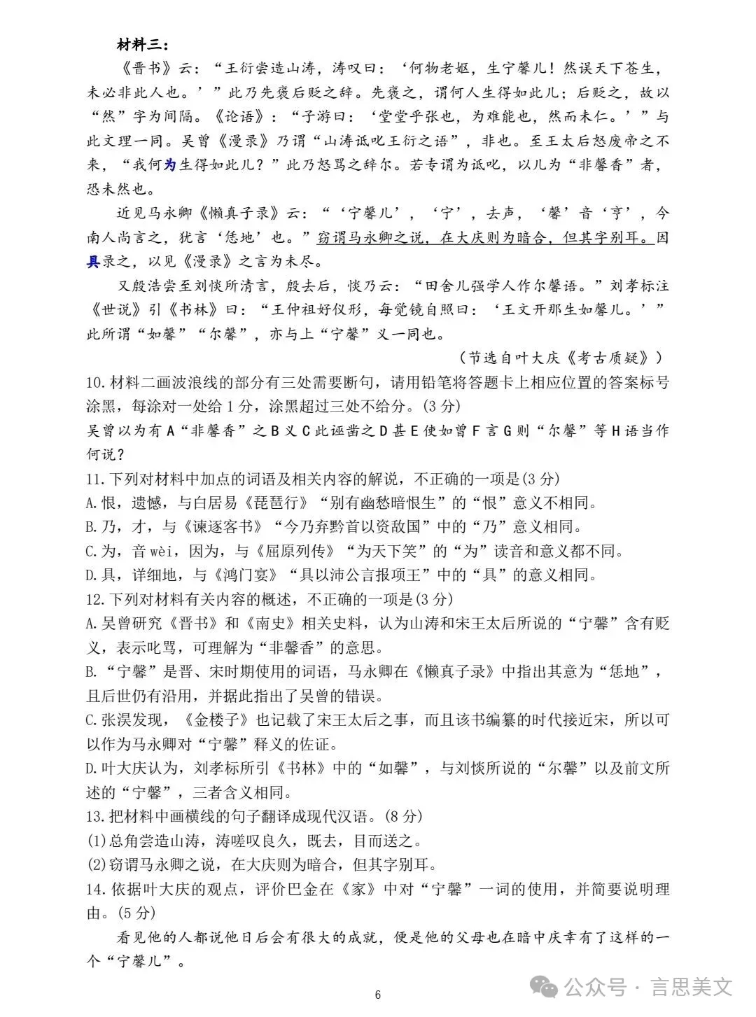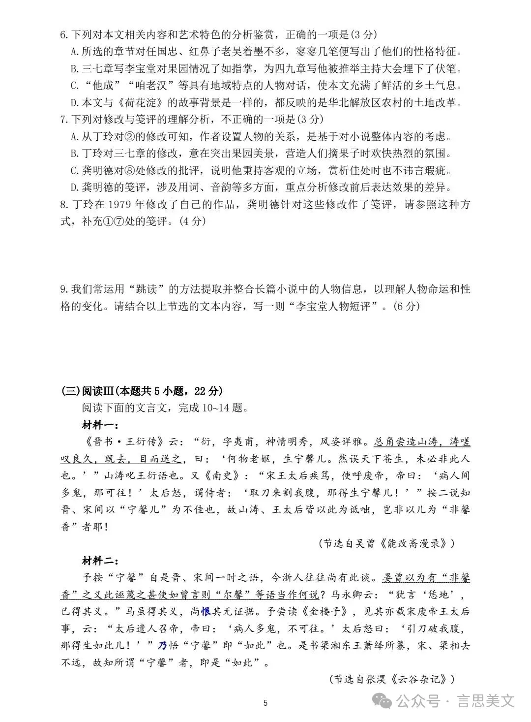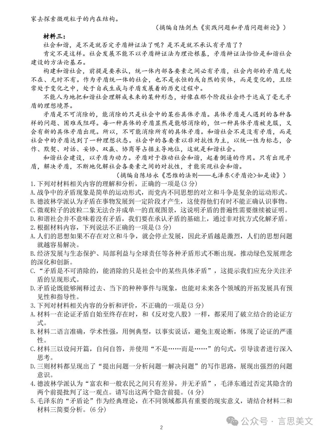 ▲试卷及答案转自言思美文,致谢!