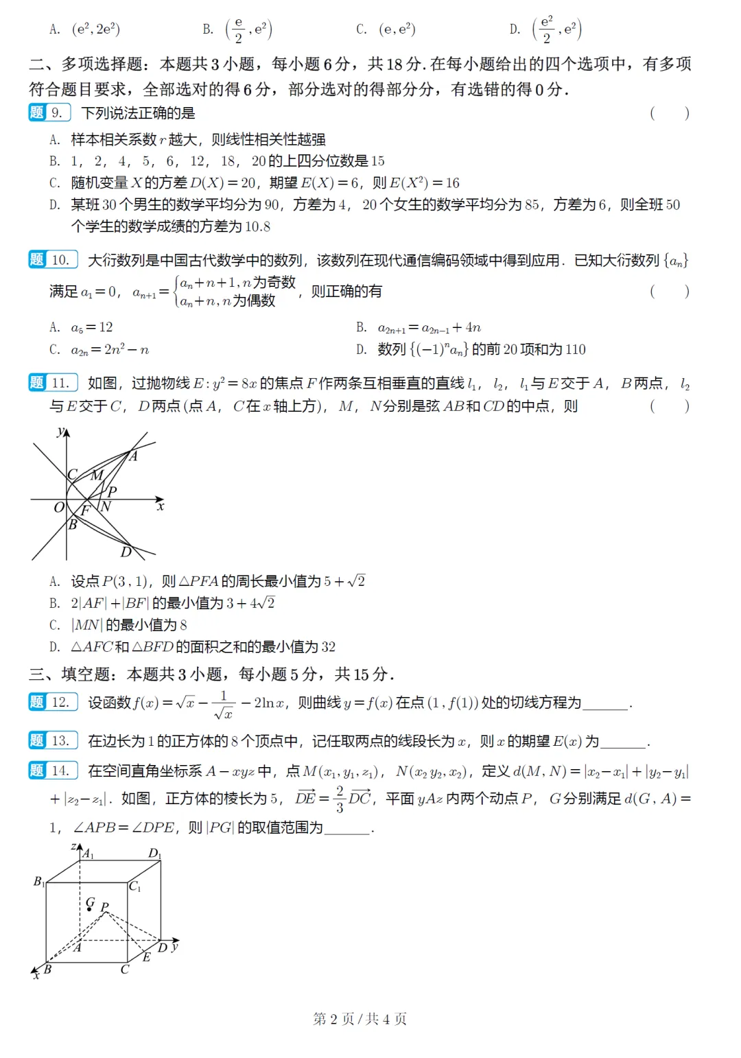153.2026届高三八省T8联考数学试卷及逐题解析(2025.12)
