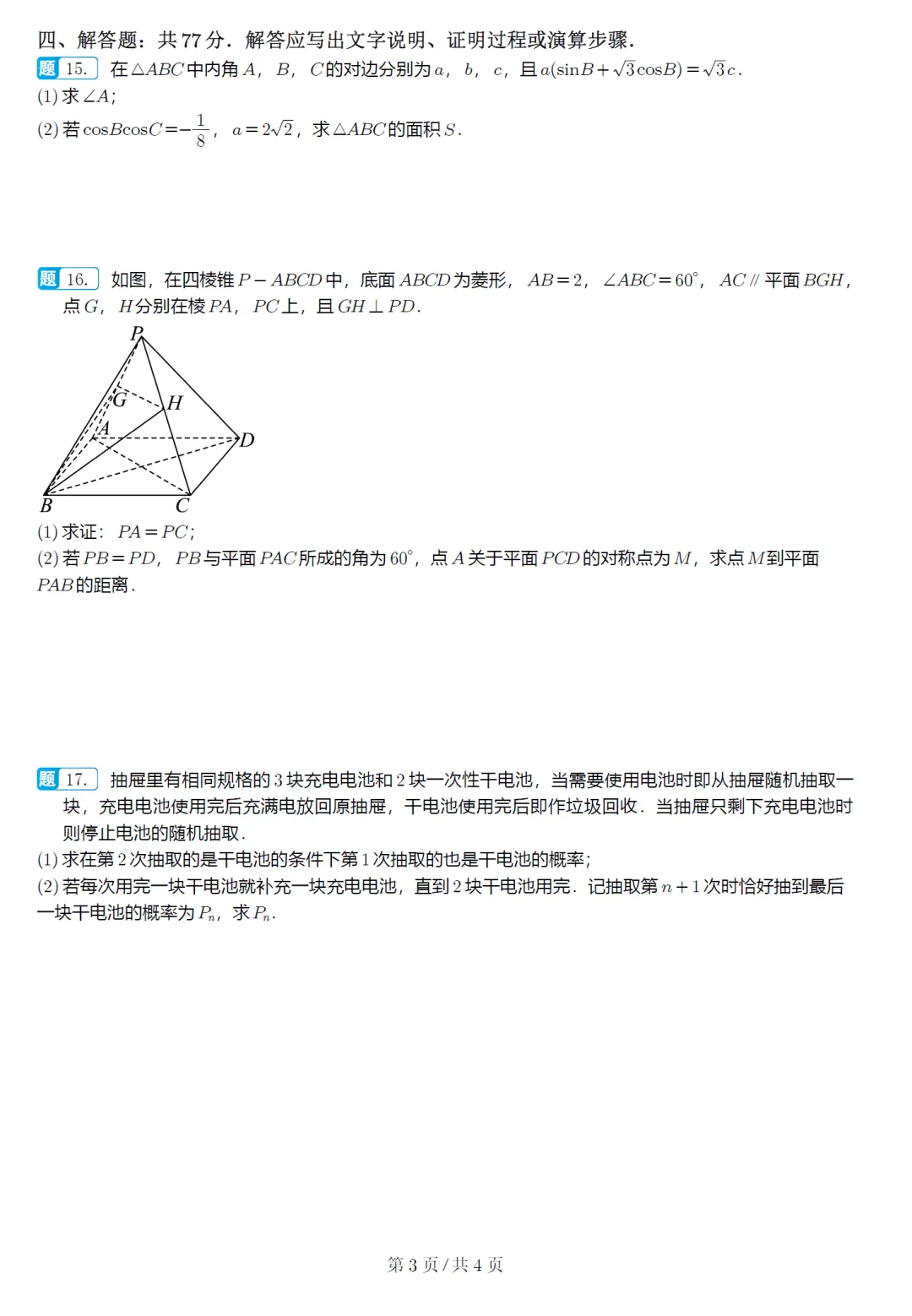 15.2025年8月河北省定州中学高三开学考数学试卷及全解析