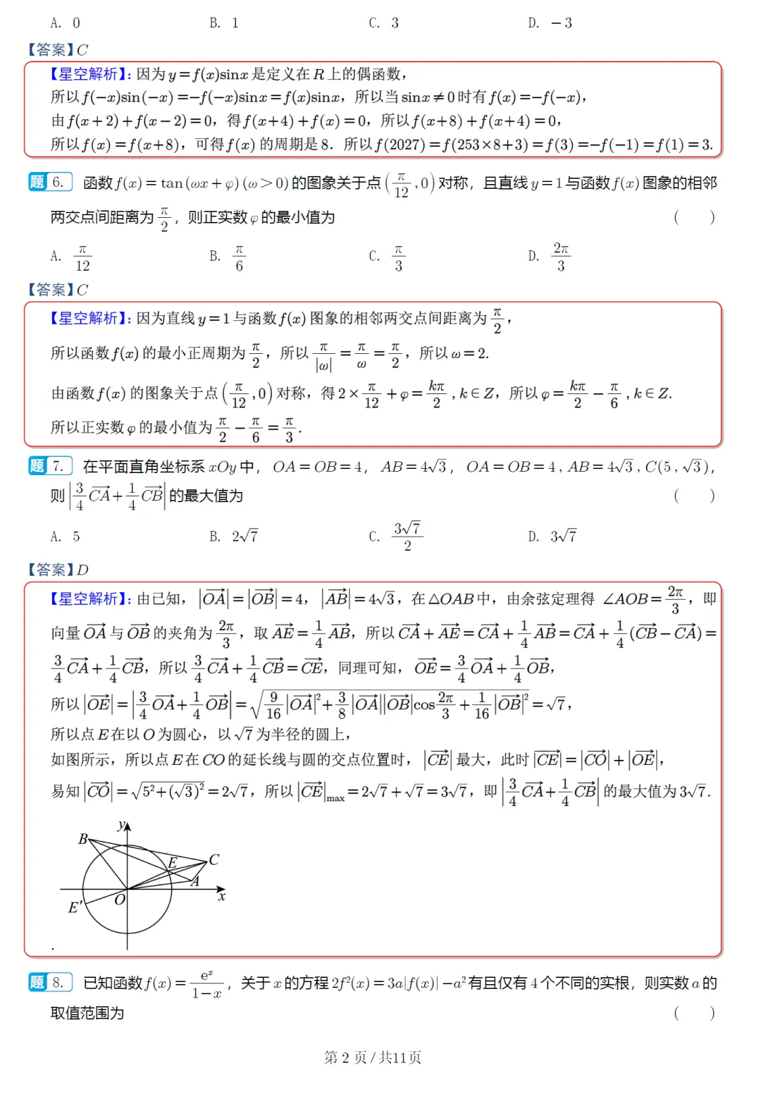 111.2026届浙江宁波11月模拟数学试卷及逐题解析(2025.11)