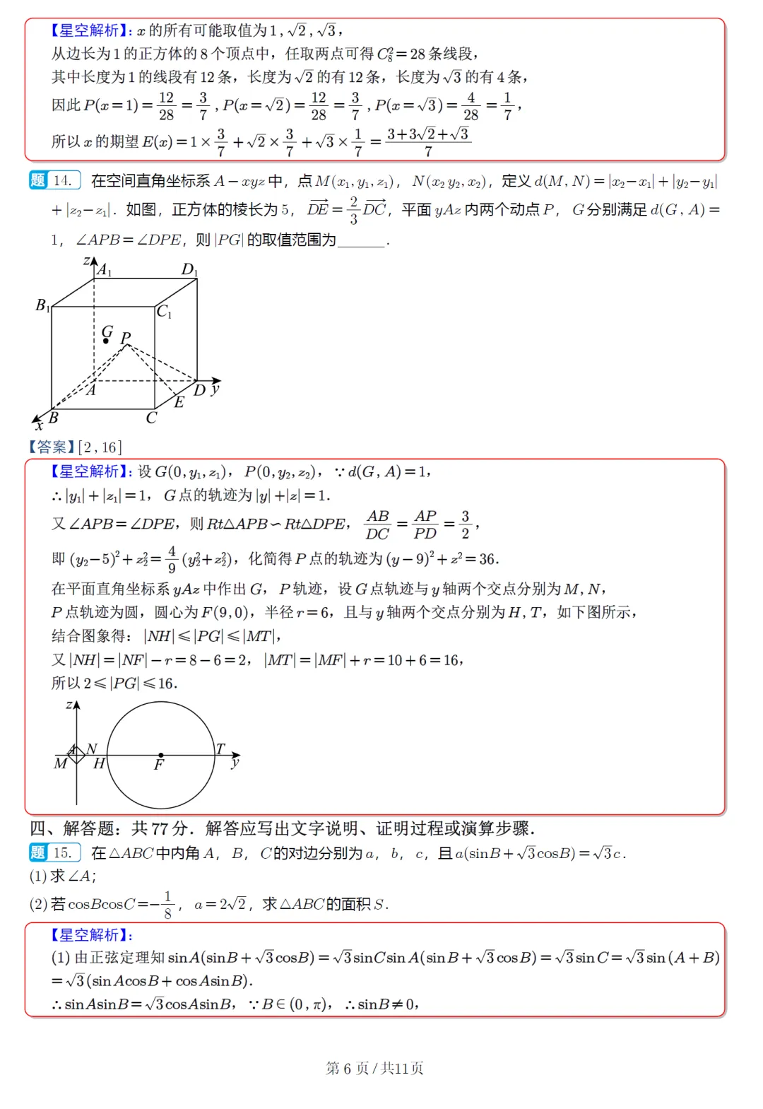 214.浙江强基联盟高三联考数学试卷及逐题解析(2026.3)