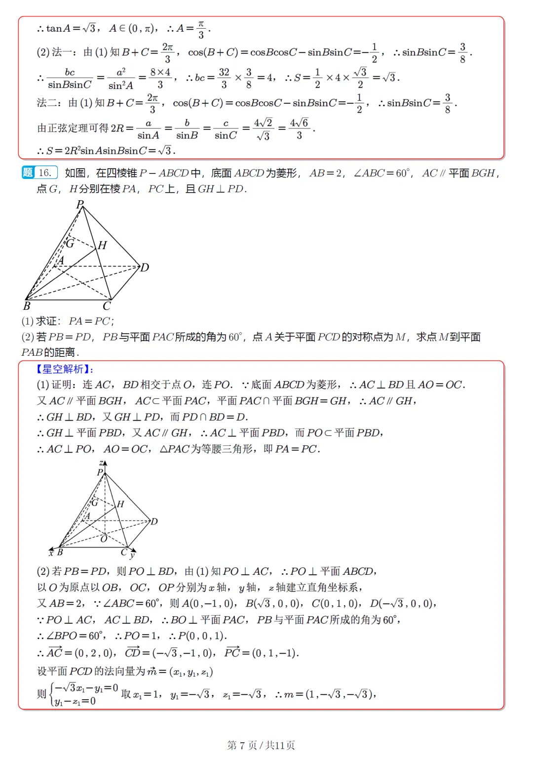 76.2026届湖南长沙一中10月高三数学试卷及全解析(2025.10)