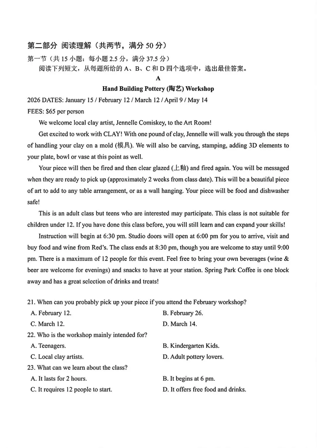 上海高考英语模拟试卷6及答案(2026.3)