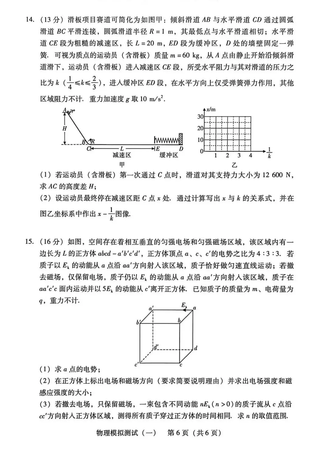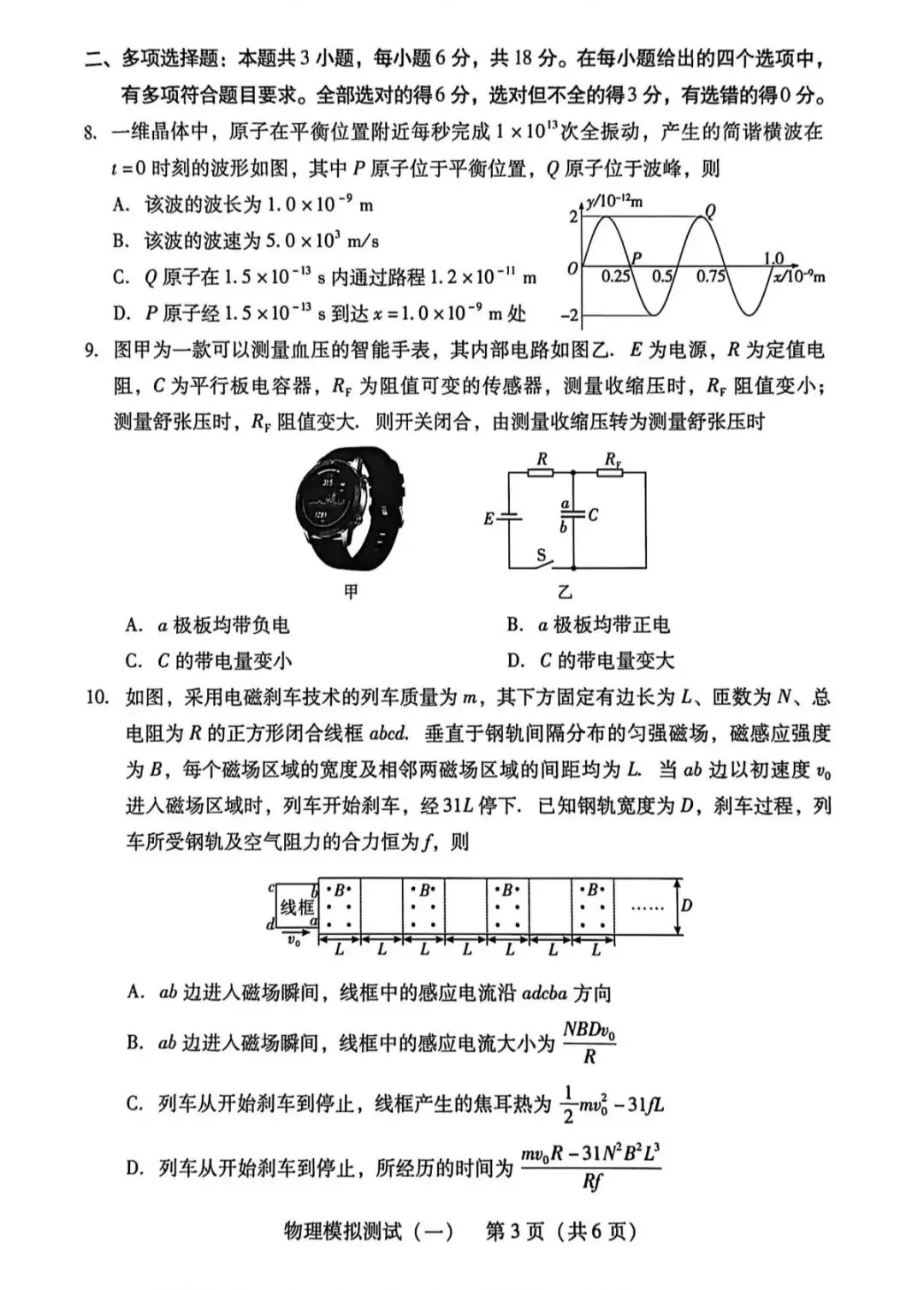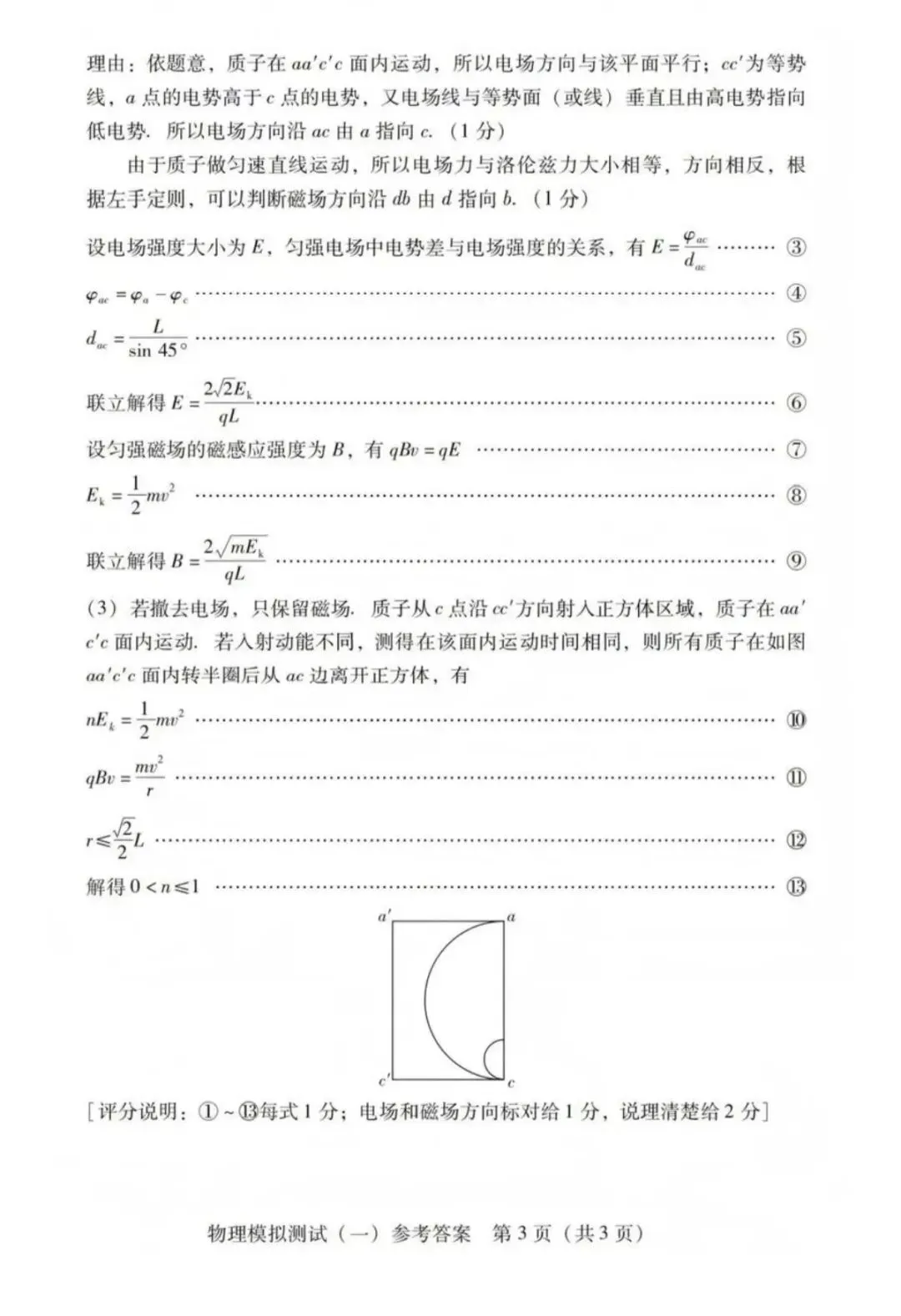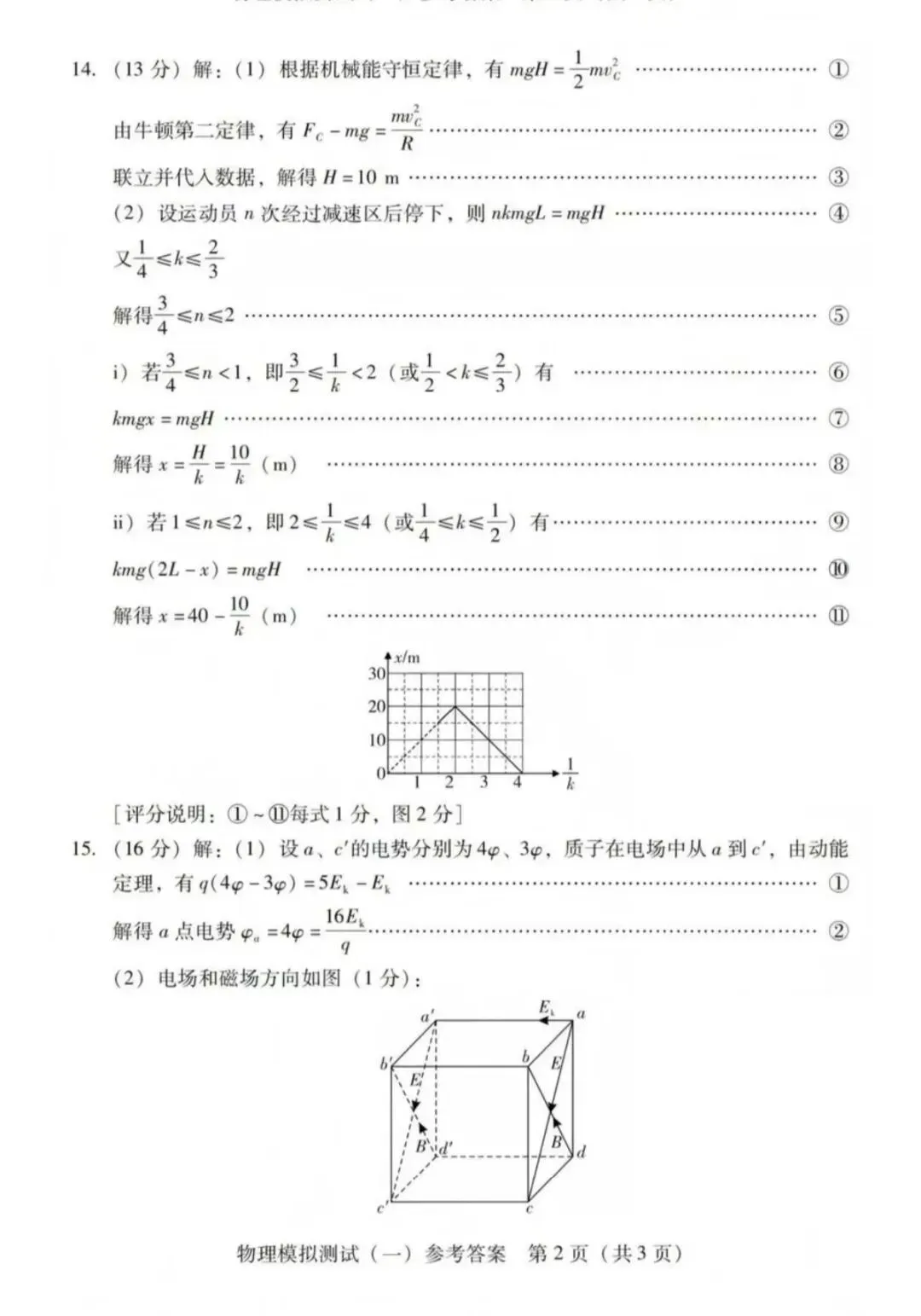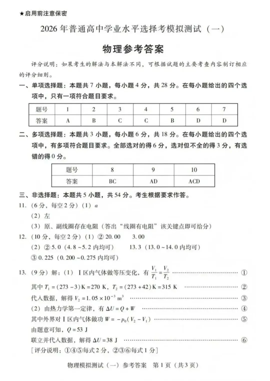 >2026年3月广东高三一模物理试卷和参考答案