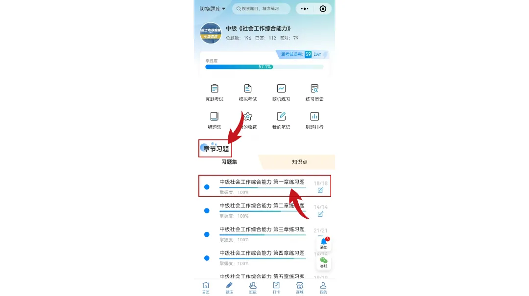 章节同步练习:每章节设置专项训练,实时检测章节学习情况
