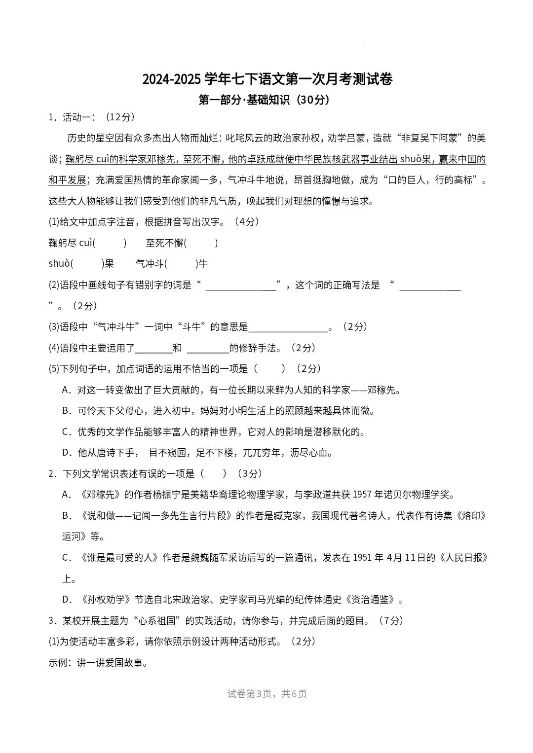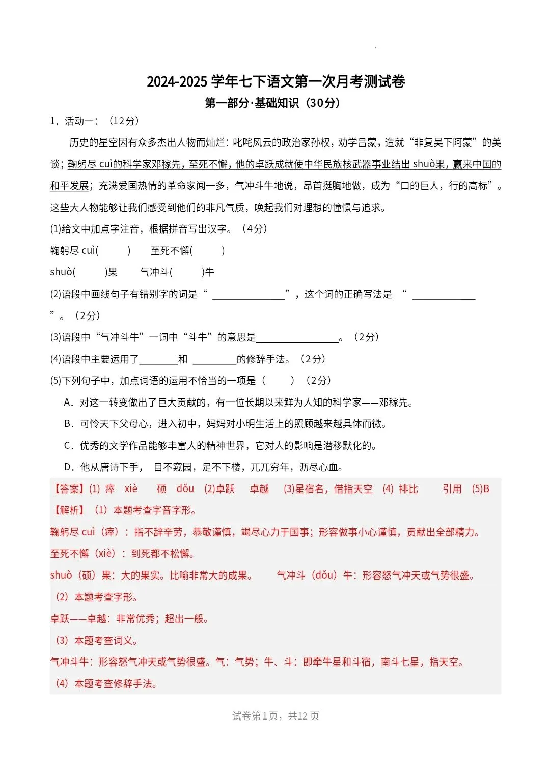 寒假蓄力,进阶不停歇。今日分享七年级下册语文第一次月考试卷2套(含答案)完整电子版可打印!高清可打印,每日轻量练习,拒绝无效刷题,用系统化资料筑牢学科基础,让假期成为提升的黄金期,开学轻松领跑。