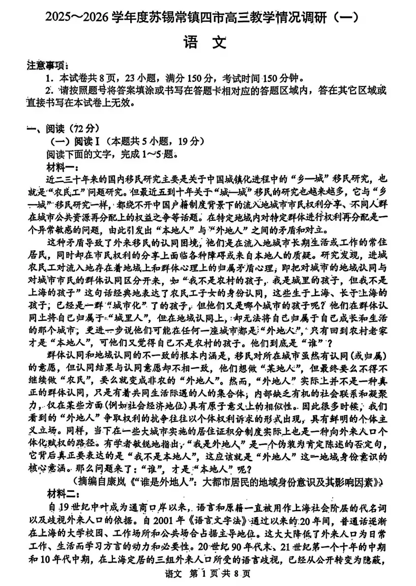 当前位置:首页>考研真题>一模试卷领取|苏锡常州镇2026届高三一模“试卷领取+权威评析“来了!